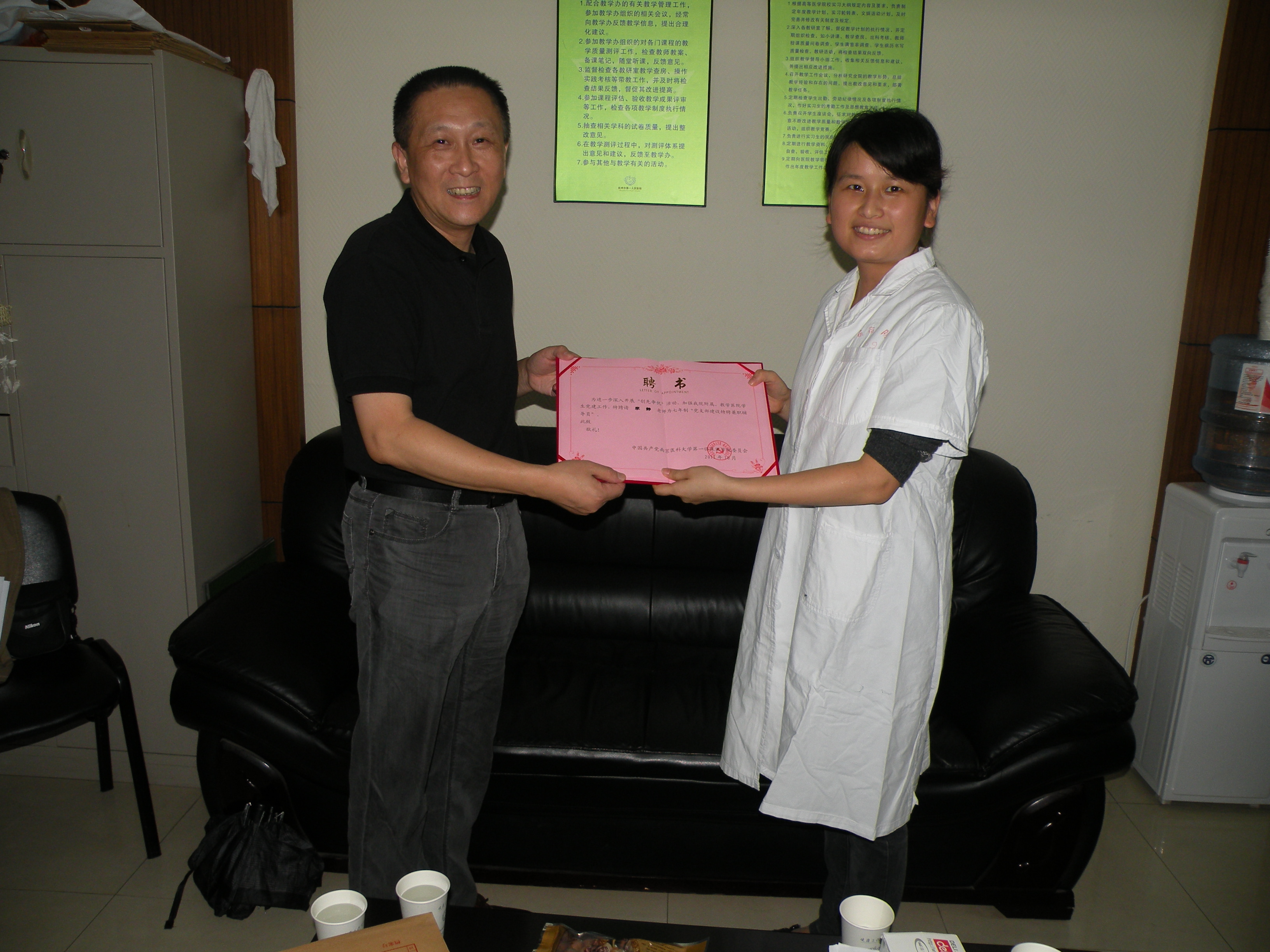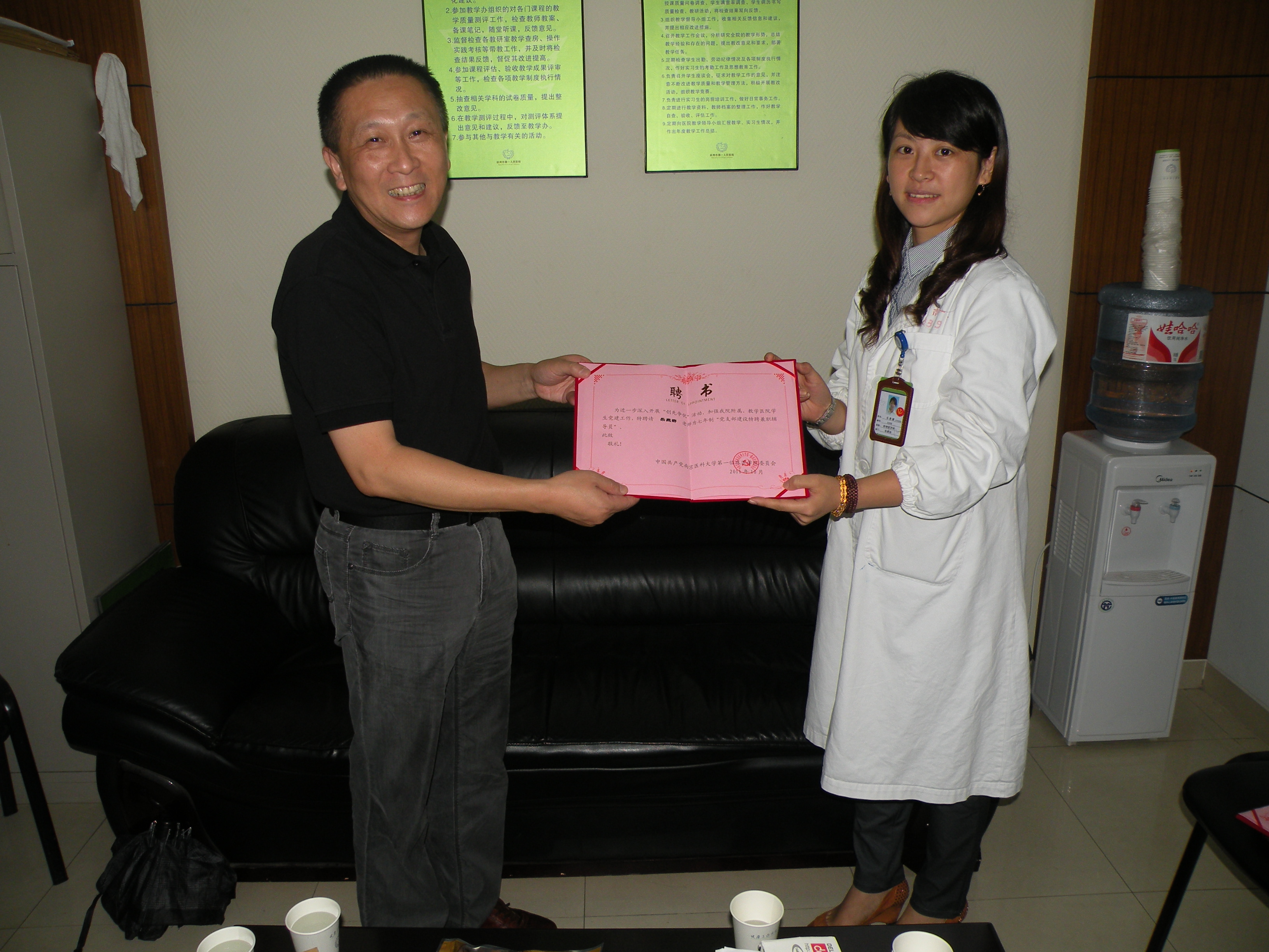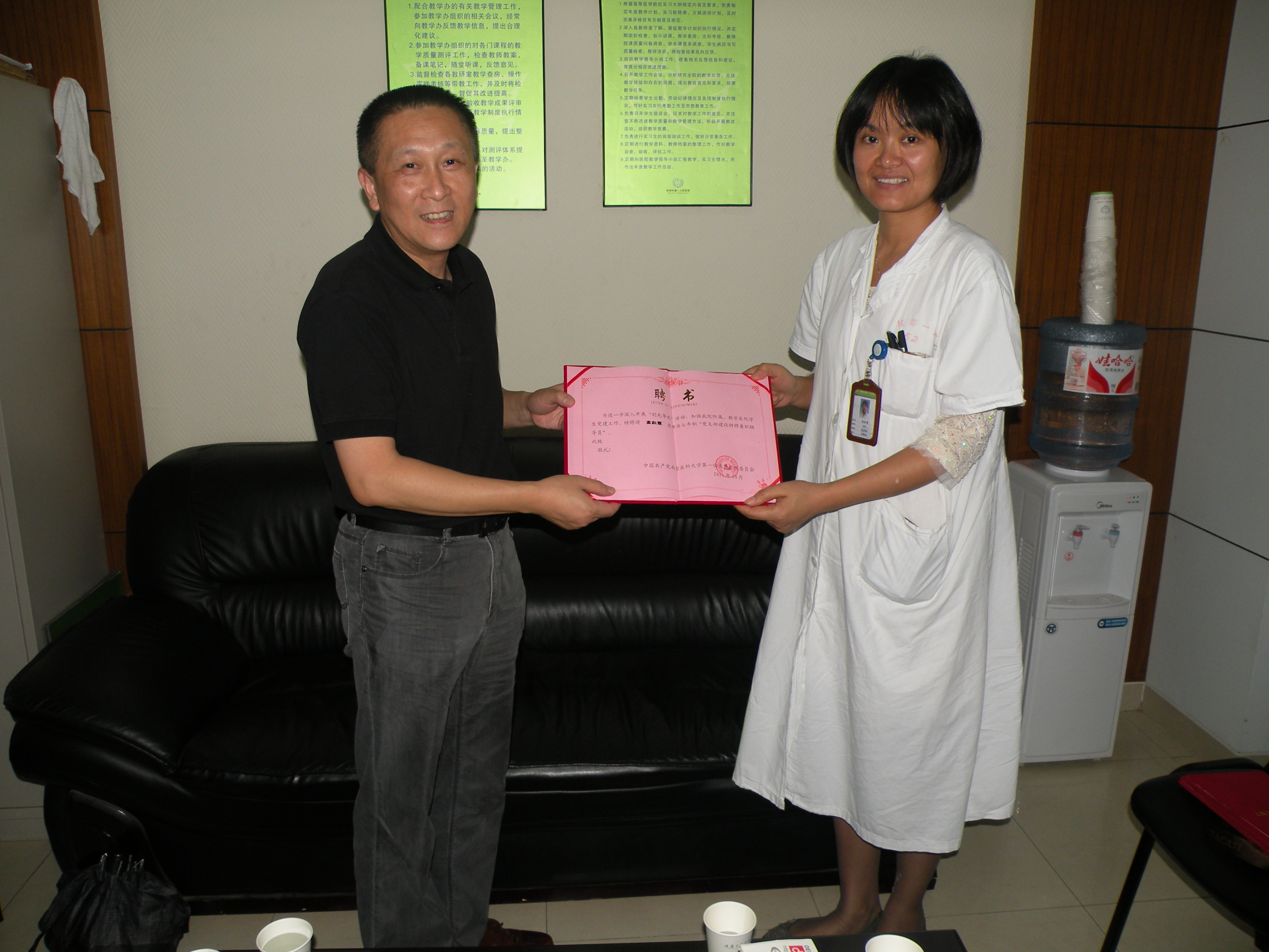 在附属杭州第一人民医院的聘任仪式上,首先季国平老师对医院科教部门老师的工作表示了谢意,介绍了学校近期的发展、学院开展创先争优的进展情况和“党支部建设特聘兼职辅导员”活动的意义。接着,学院党委达建书记重点介绍了本次活动的意义和学院开展本次活动的初衷,并对特聘兼职辅导员提出了具体要求,对各班级支部的工作进行了指导,达建书记分别给党支部建设特聘兼职辅导员高虹霞、乐燕娜和李静老师颁发了聘书。特聘兼职辅导员和支部书记们都一致表示会以此为一个新的平台,努力开展党员活动,将创先争优落在实处。