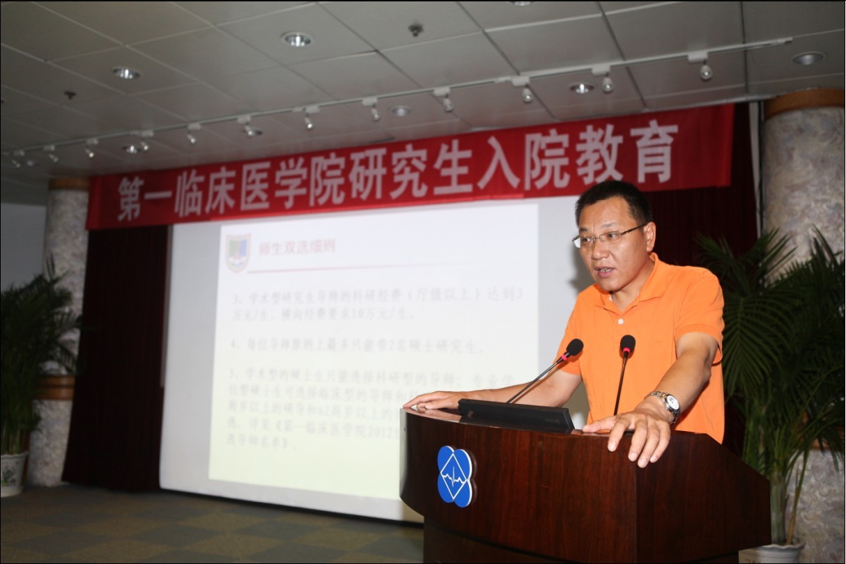 最后,孔祥清院长介绍了博士、硕士研究生培养流程及学位授予基本条件,并对《第一临床医学院关于实施硕士研究生、导师双向选择细则》作了详细解释。他勉励全体新生要虚心向导师学习,刻苦勤奋,潜心钻研,勇于创新,早日学有所成。同时要求各教研室按照《细则》中相关规定,做好2012年度硕士研究生、导师双选工作。