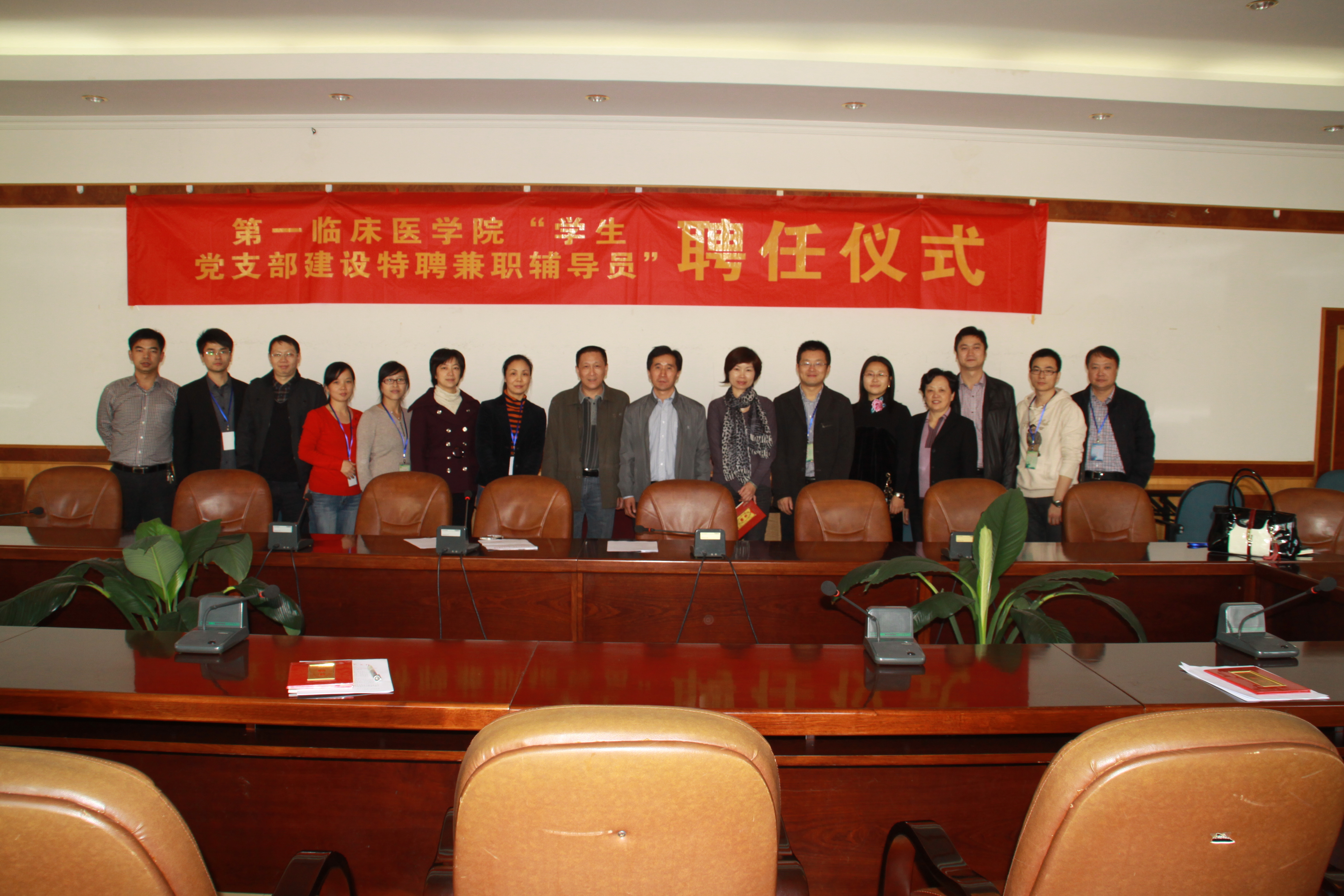 2012年11月2日,第一临床医学院党委在图书馆五楼会议室举行了“学生党支部建设特聘兼职辅导员”的聘任仪式。仪式由第一临床医学院苏荣健副书记副院长主持,达建书记宣布聘任名单并对在各位被聘老师平时对学生党建工作的关心和帮助表示感谢的同时,对今后的学生党建工作提出了进一步的期望。与会的各位被聘老师纷纷表示今后会在学院党委的指导下更加用心的组织引导好各分管学生支部的各项党建工作。
