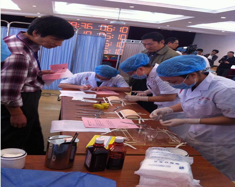 上午8点,南京医科大学第六届临床技能大赛(七年制组)在五台校区图书馆五楼隆重举行,来自上海、杭州、南京、无锡的8家实习医院代表队参与了本次大赛,在校领导充满殷切期望的致辞中,本次大赛拉开了帷幕,上午9点,各支参赛队伍已准备就绪,比赛正式开始。上午的竞赛共分四个站点,分别是外科站切开缝合打结、内科站一骨髓穿刺术、内科站二插胃管和妇产科站妇科检查三合诊,每站十分钟。在紧张的比赛中,一附院代表队的四名同学沉着应对,在巨大的压力下不慌不忙,充分发挥了自己的实力,展现了自己的风采。经过激烈的角逐后,最终一附院代表队取得了预赛总分第一名,与其他四支代表队一起进入下午的决赛。
