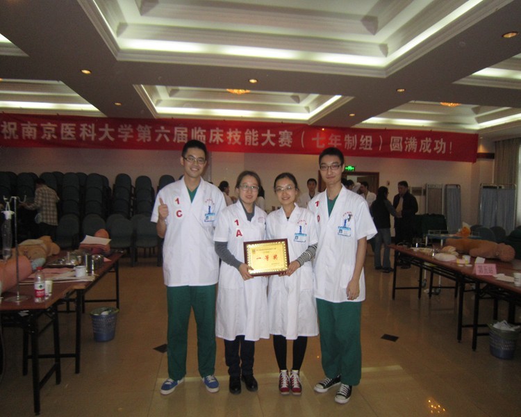 2013年11月1号下午,在夕阳的余晖中,南京医科大学第六届临床技能大赛(七年制组)圆满落下帷幕!在本次大赛中,由程琳、姜亚、崔畅、黄雷四位同学组成的一附院代表队取得了总分第一的好成绩,同时获得了四个单项奖中的外科站、内科一站和内科二站三项单项奖!一临王海副院长,教学办冯琴主任、曹燕老师、外科学系王巍老师以及学生于书娴、丁东到达了比赛现场,为同学们打气助威。