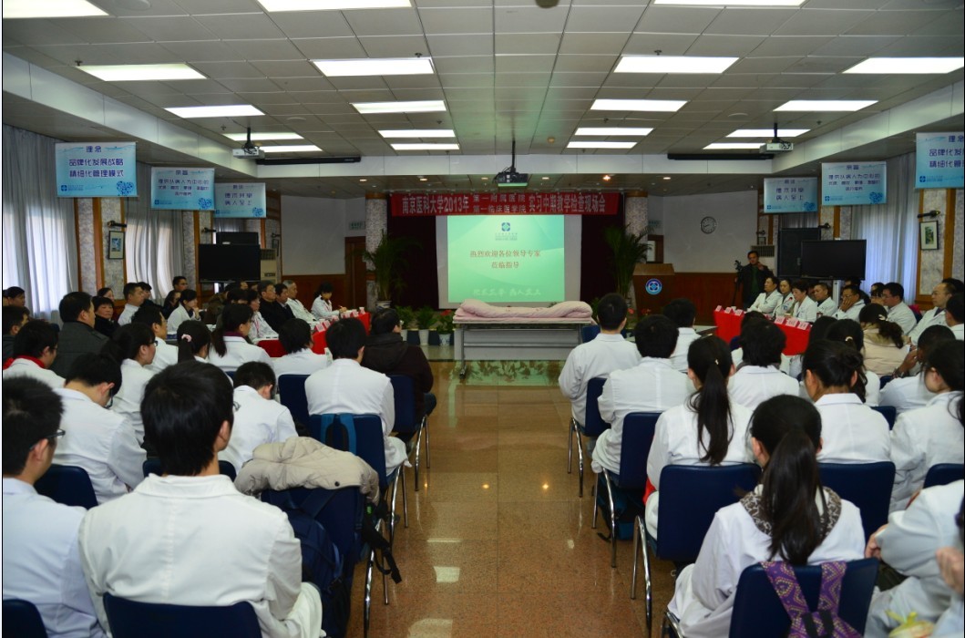 2013年12月18日,南京医科大学陈琪校长带领检查组专家戴令娟、吴文溪、徐友娣、张淑英、康丽娜、许志宏、张子豪及教务处高兴亚处长、学工处、康达学院、国际教育学院领导以及老师,观摩人员28人来我院进行2013-2014学年实习中期教学检查。南京医科大学副校长、第一附属医院党委书记、院长王虹教授、第一临床医学院院长孔祥清教授、达建常务副书记、王海副院长及全体工作人员、相关学系、教研室负责人林琳、曹晓建、仇红霞、程文俊及教师代表32人和2009级五、七年制、国教院南亚班、康达学院临床医学专业、医学影像等专业的132名实习同学参加了此次检查,到会人员共有192人。