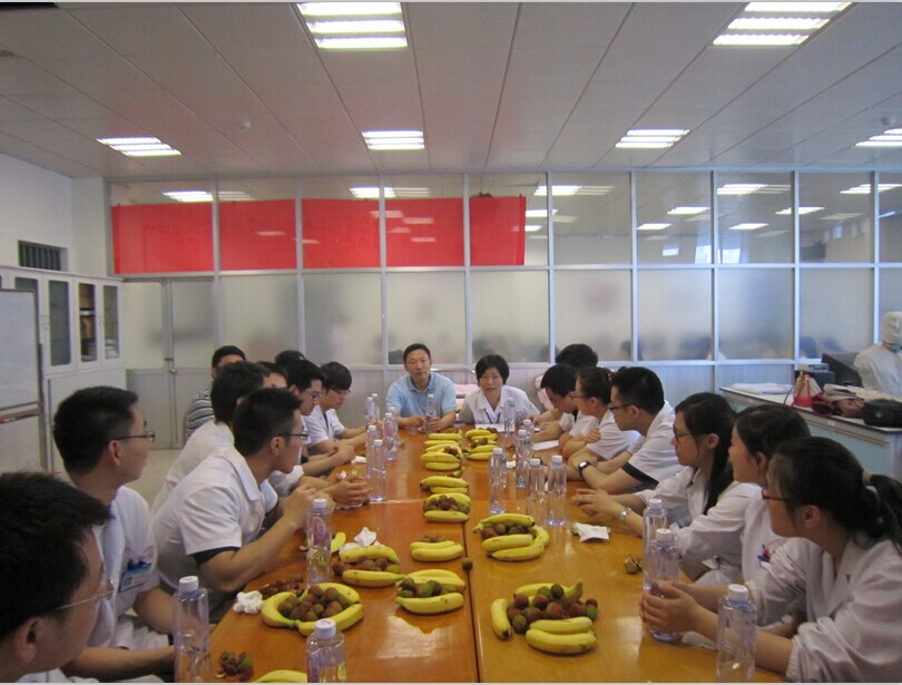 首先,冯琴主任对2013-2014学年实习工作进行总结,并且就同学毕业离院前的具体事项进行安排。接着,同学们各抒己见,畅谈在一附院实习这一年在临床知识和技能等方面的收获,赞扬各科室老师们的带教意识和态度、让人受益匪浅的学术讲座以及细致认真的教学查房等等,感谢老师们辛勤的栽培和教诲。当然,同学们也提出了许多在医院临床实习中遇到的问题:1、在陪检危重病人时希望有其本院住院医师陪同,以防出现紧急情况时不知如何处理。2、教研室最好能指定带教老师,让同学们有专人管理。3、能有更多跟主任上门诊的机会,增长见识。4、增加麻醉科的实习时间,缩短耳鼻喉科等的实习时间。5、科室多开设一些小讲座,给大家讲述一些常见病的不典型表现。带教老师也给实习生提出了要求:1、同学们对去二院实习的积极性不高;2、实习同学的自主能动性太低;3、五年制实习同学要协调好考研和实习的关系。同学们都清楚地认识到:在实习期间,要想真正学到东西,必须充分发挥自己的主动性,不仅要学习老师的临床技能,更多的领会到了待人接物、医患沟通、学术道理、人文关怀等方方面面的内涵。最后,王海院长对本次座谈会进行了总结:1、强调同学们要珍惜实习时间,在科室工作要任劳任怨,多动手,勤思考;2、要学会总结每个实习阶段的收获和不足;3、要学会做人,这样才能做事、做学问。