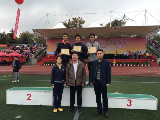本届运动会持续两天,在第一临床医学院全体师生员工的努力下,运动成绩较去年明显进步,学生辅导员王建伟和熊潇老师包揽青年教工组100米和200米短跑竞赛冠亚军。