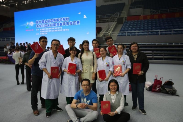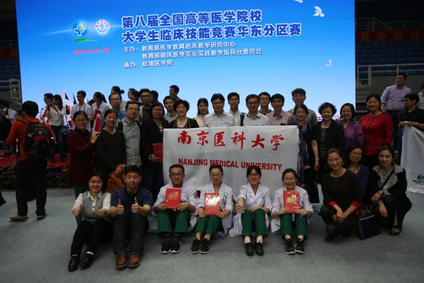 4月14至16日,第八届全国高等医学院校大学生临床技能竞赛华东赛区比赛在安徽蚌埠医学院举办,来自华东各省28所医学院校的29支代表队同场竞技,激烈比拼,最终,由我院临床医学专业2012级七年制和五年制实习生高蕊、谢梦燕、展翘、陈群4名同学组成的南京医科大学代表队荣获本次竞赛一等奖,同时有6人次获得产前检查、腰椎穿刺和甲状腺检查技能三个单项奖,将晋级全国总决赛。