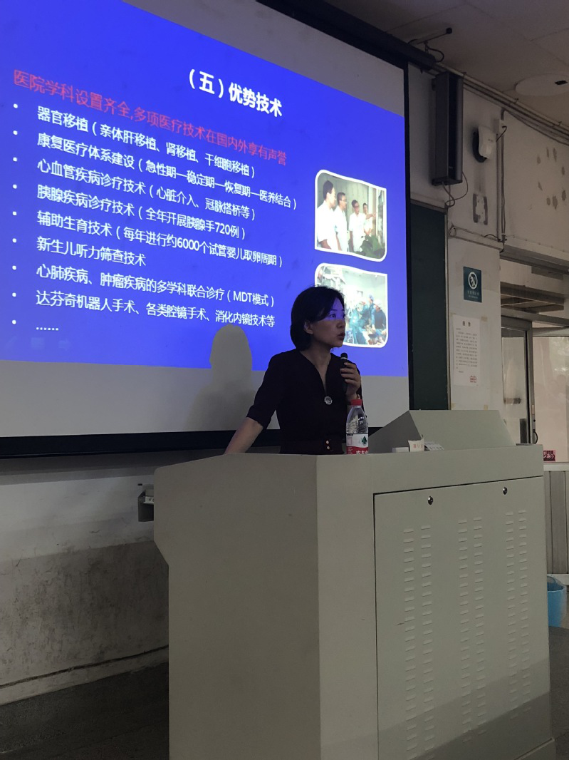 殷院长介绍了医院概况、学科发展及学科选择等方面内容,并逐一回答了同学们的提问。现场互动气氛热烈。
