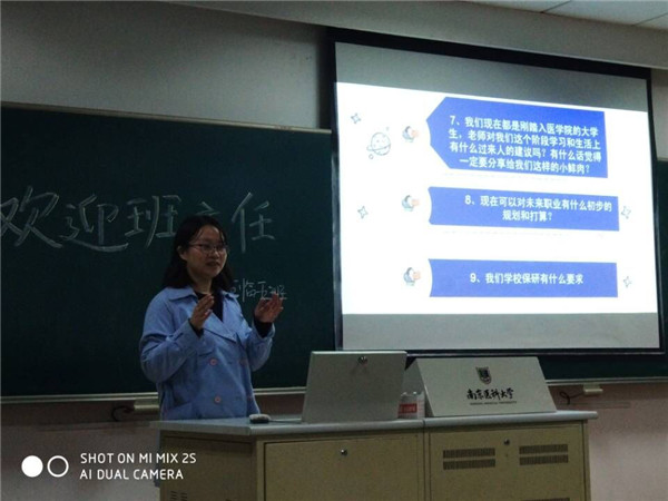 11月7日晚,18级临床医学(五年制)5班在博学楼召开了班会,邀请到了兼职班主任武茜老师与会。班会由班长印清扬和团支书汪雨彤主持。