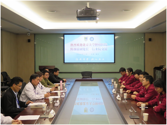 11月15日下午,北京大学肿瘤医院临床肿瘤学院教育处副处长、研究生党总支书记陈扬霖一行8人来我院交流。学院领导苏荣健、殷咏梅、李春、学科建设与研究生管理办公室负责人、研究生党支部书记代表、研究生会主席团成员及研究生代表参加交流会。