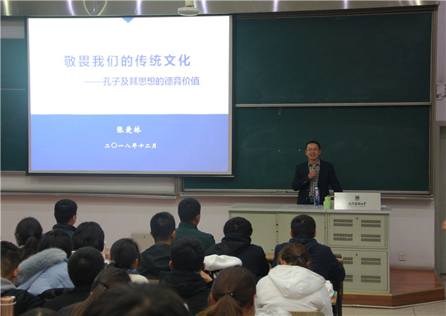 培训分新闻写作和人文素养两个部分。在新闻写作培训中,蔡心轶老师理论联系实践,通过大量新闻稿件对比,生动形象地向同学们阐述了:写新闻宣传为了什么?如何写新闻宣传?如何写出好的新闻宣传报道?同学们在蔡老师的精彩报告中始终感受着新闻之美和写作之精髓。在人文素养讲座中,张爱林老师以“敬畏我们的传统文化”为主题,以点代面,用历史和发展的眼光向同学们展现了孔子的一生灿烂辉煌,及其文化在历史的起承转合之中愈发璀璨耀眼,阐述了敬畏中华传统文化的重要性和必要性。同学们从“孔子的生平经历与价值追求”,“什么叫生活?生活就是你活生生的样子。不要把你生活的美感破坏了”,等诸多通俗而生动,幽默而风趣的语言中体会到深刻道理。