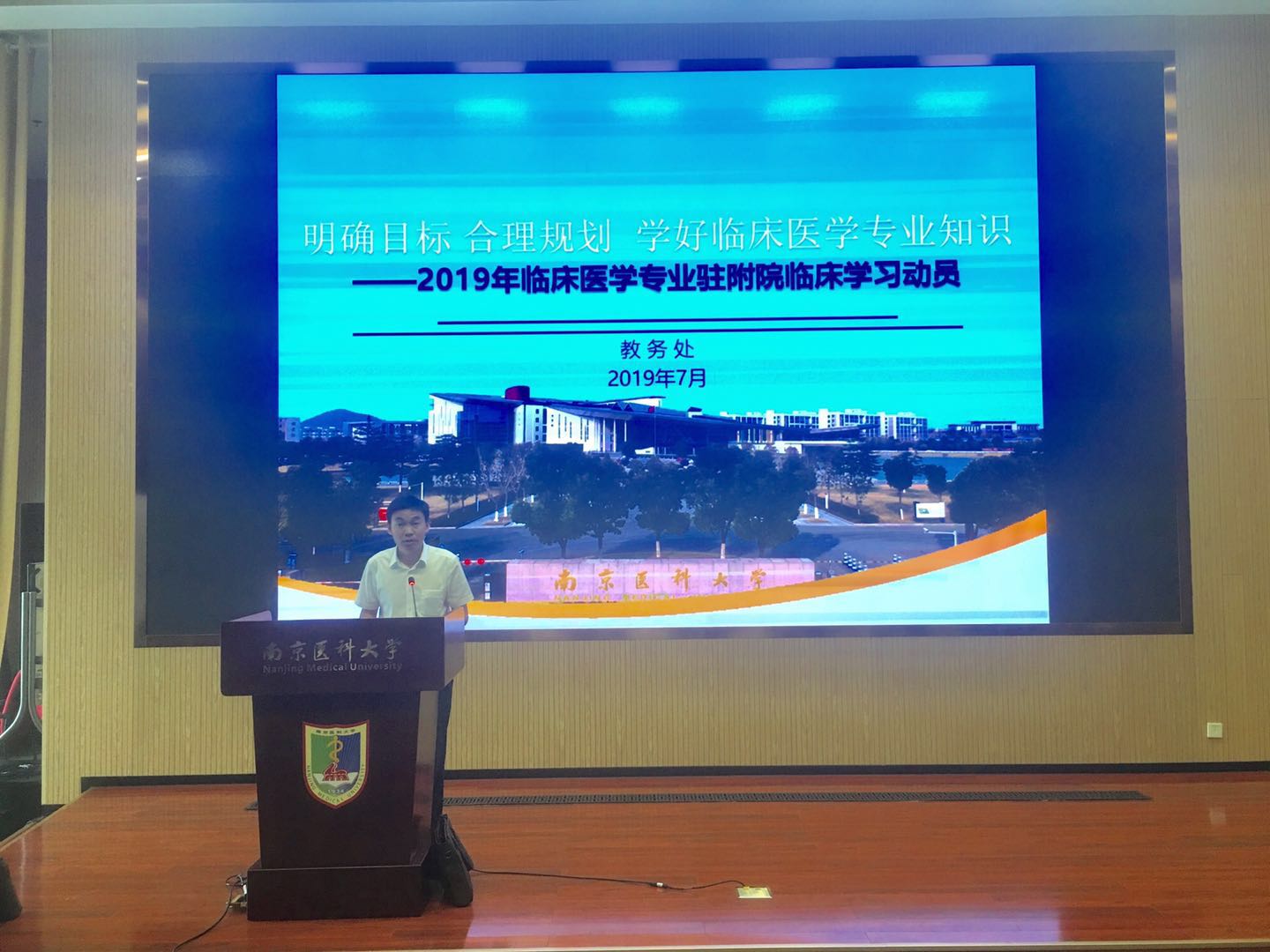 7月4日上午我院2016级五年制临床医学专业见习动员大会在江宁校区德馨楼D201和D101两个会场同步召开,学校医学模拟中心副主任周蕾、教务处副处长刘继永以及教务科、实习科相关老师受邀出席,会议由学院副书记盛彤彤主持。