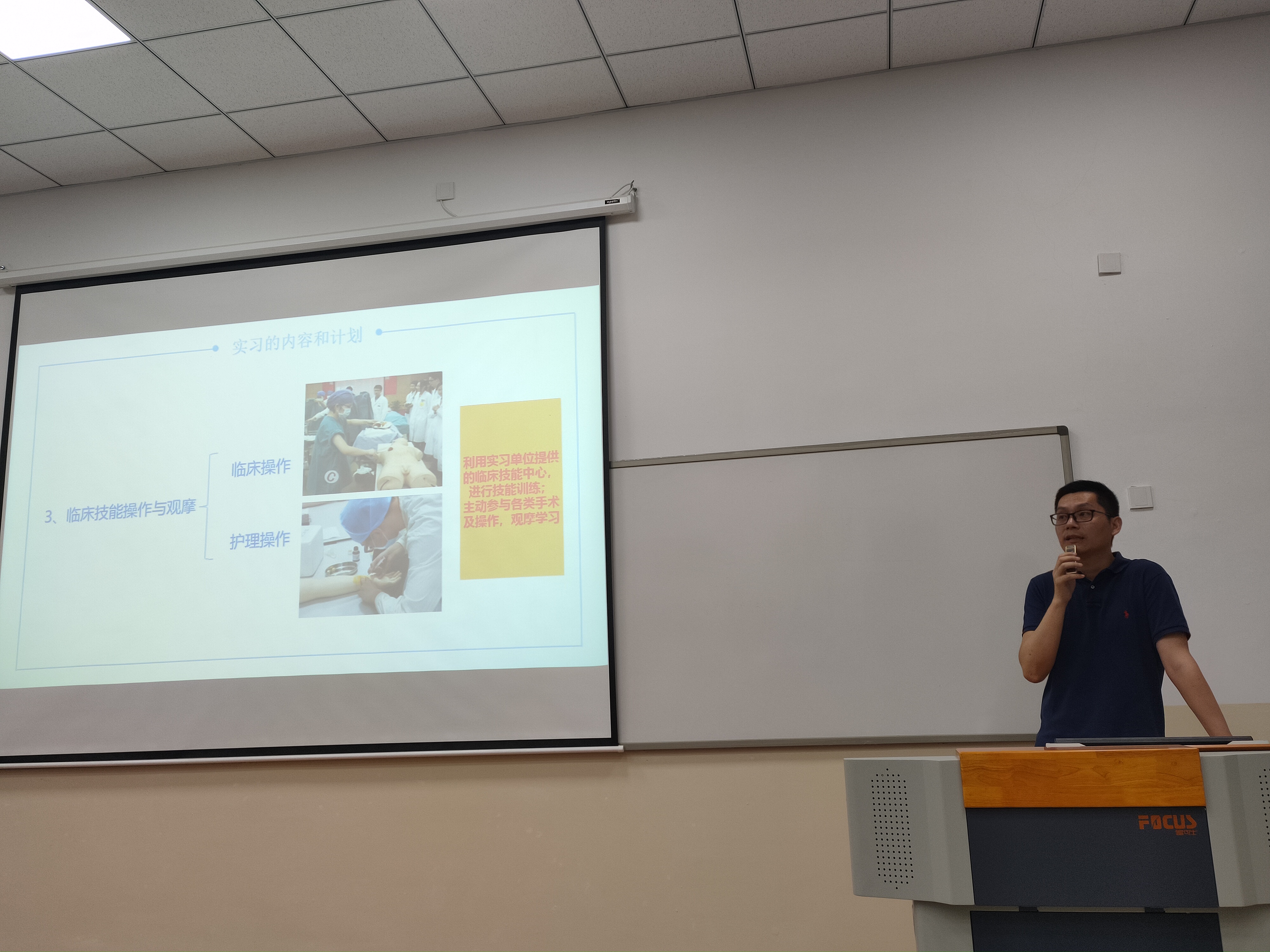 会上,教务处实习科孙茂才老师向实习同学介绍了实习原则、实习时间、实习内容、实习纪律、岗位要求、实习安全、实习考核以及费用报销等相关内容,希望大家能够积极主动,抓住机会,认真实习,顺利完成各项实习工作。刘中领老师给同学们提出四点希望:第一是安全问题,包括人身安全、财产安全以及院感安全,尤其杜绝在宿舍使用违章电器,注意宿舍卫生和安全;第二是遵纪守法,既要遵守学校的规整制度,也要遵守医院及各个科室的制度要求。如有请假要严格按照请假流程办理请假手续;第三实习要积极主动,尊重老师、护士及患者与患者家属,带着真情进行实习,做到口勤、手勤、脚勤、脑勤,严格按照带教老师的要求进行操作,理论与实践相结合,勤于思考与总结。四是学会做人做事,注意培养情商,快乐生活。