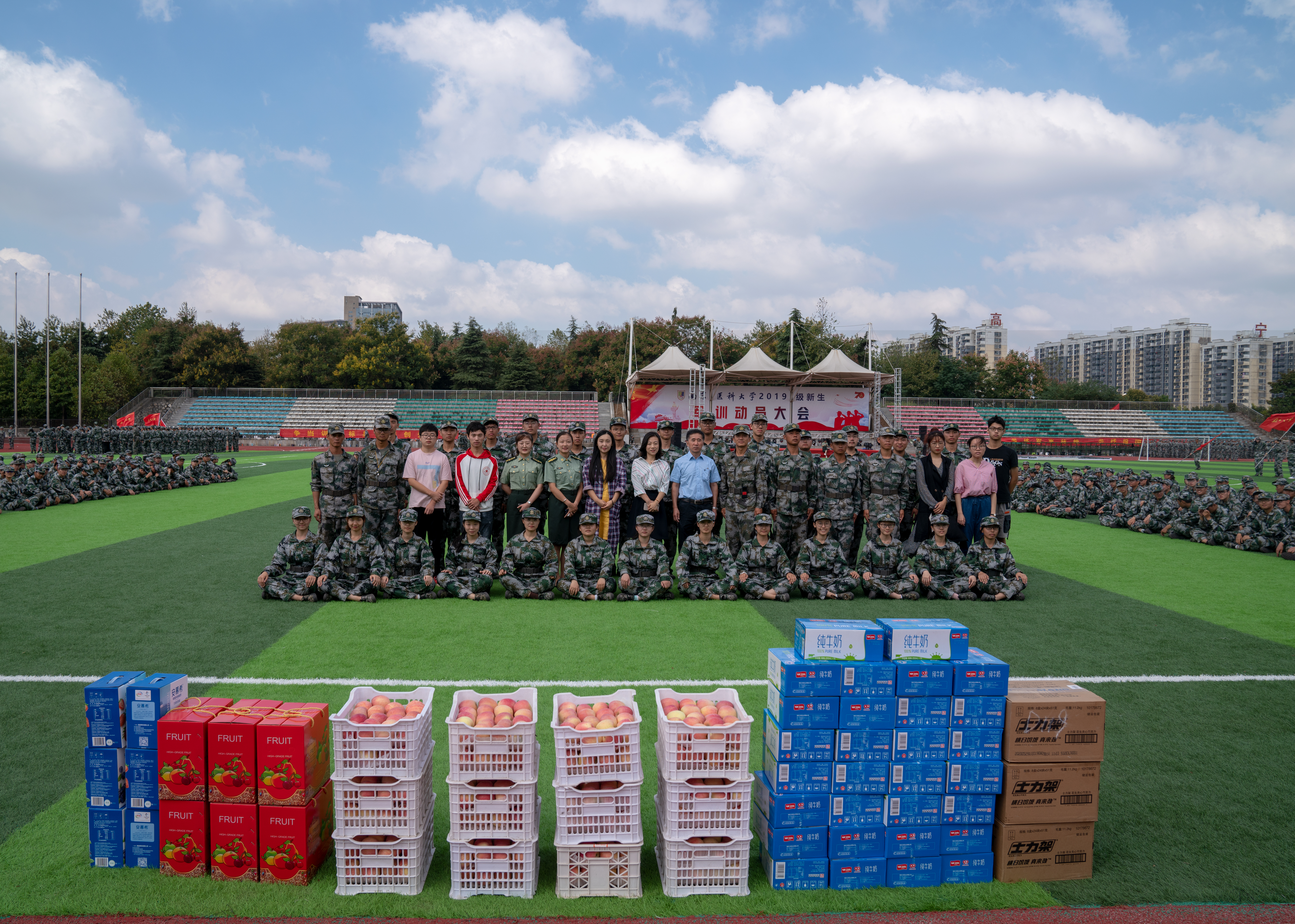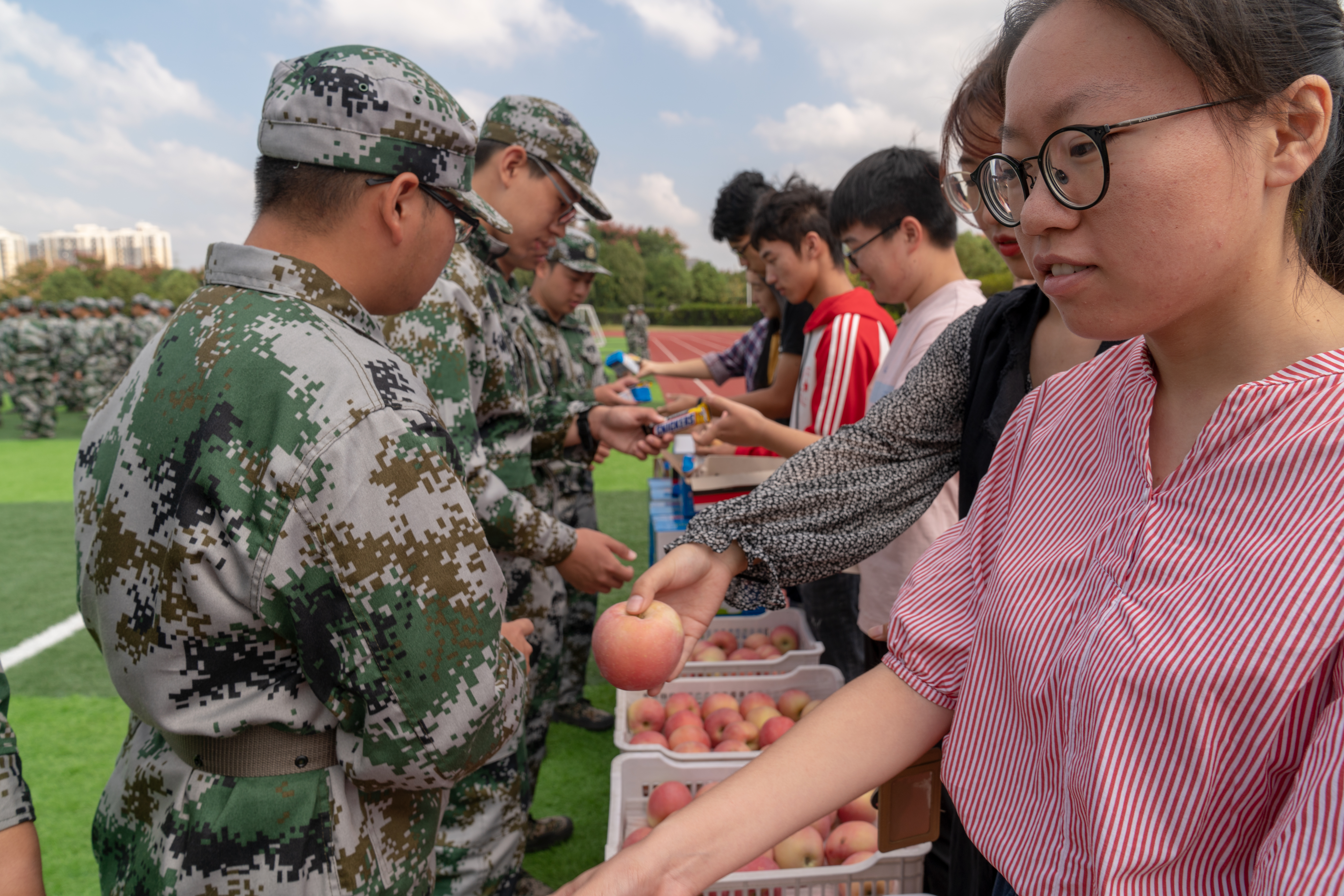 最后,学院为承训教官和同学们准备了军训慰问品。同学们以热烈掌声感谢了学院领导老师,学长学姐的关心和爱护,并表达了将用优秀的军训成果,来继承发扬学院优秀的传统,捍卫学院的荣誉。