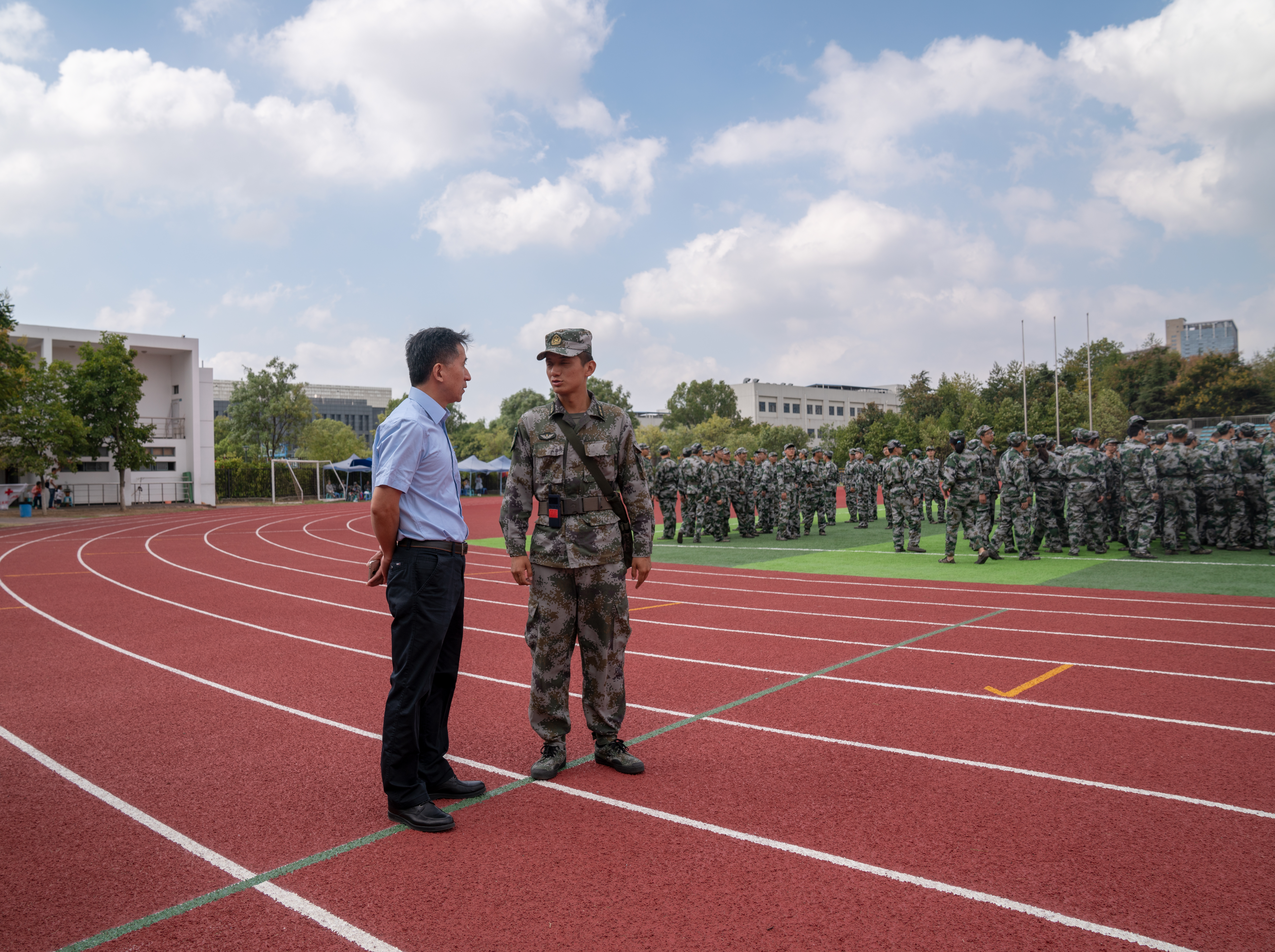 苏书记与承训教官进行了深入的交谈,了解学生训练的情况和进展,对教官们在军训中的辛勤付出表示慰问和感谢。同时赞扬同学们在军训过程中遵守纪律,互相帮助的优良表现,到部队营地表演,展现了风采,体现了一临学子良好的精神面貌。苏书记寄语同学们在接下去的军训中继续发扬风格、克服困难、团结合作,通过军训进一步体会当下来之不易的和平幸福的生活,珍惜青春时光,好好学习,为祖国成才,为医学奋斗!
