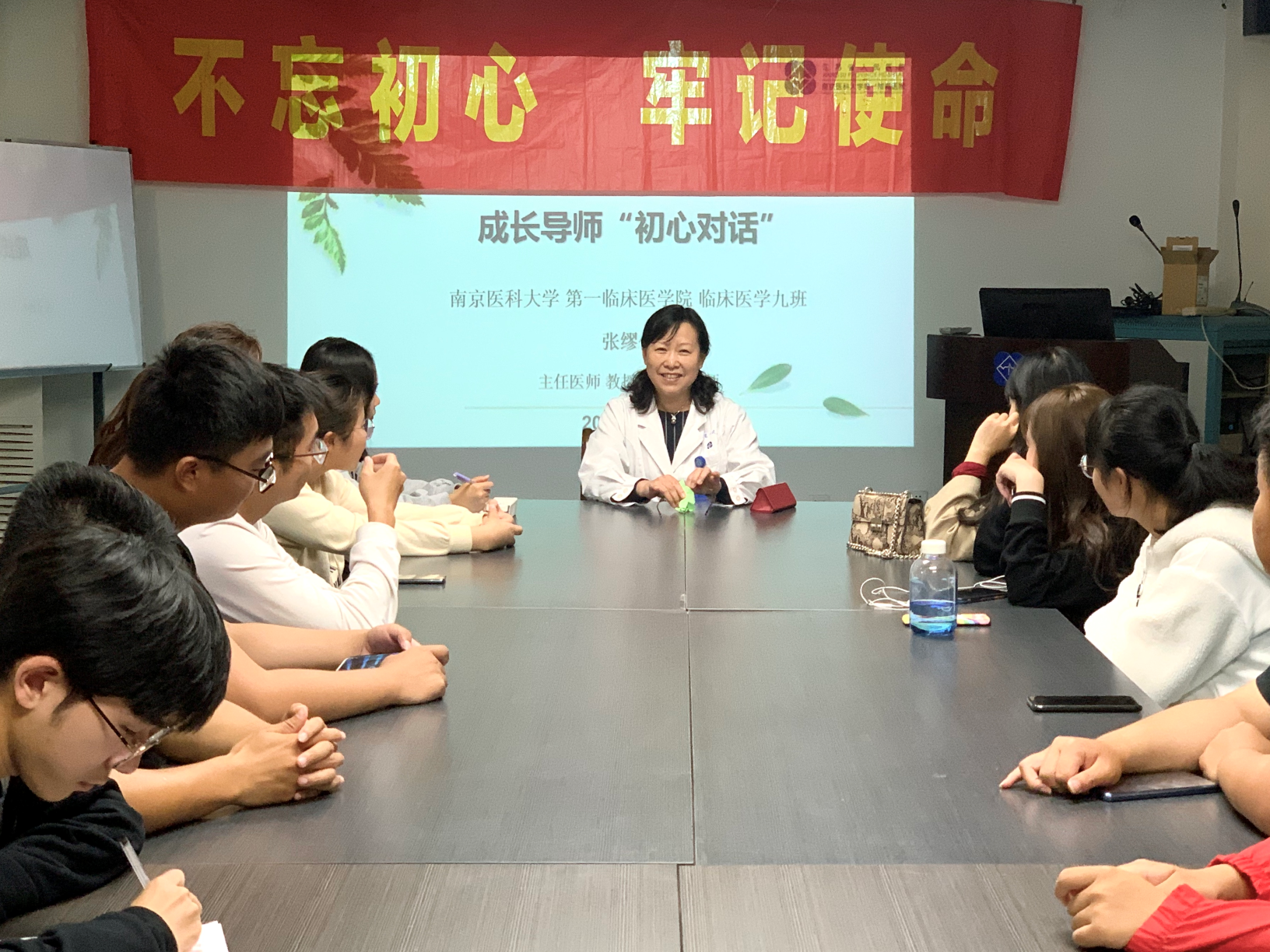 10月23 日下午,19级临床医学五年制9班全体同学乘大巴前往南京医科大学第一附属医院与风湿免疫科主任医师,教授,博士生导师张缪佳教授共同开展成长导师“初心对话”活动。