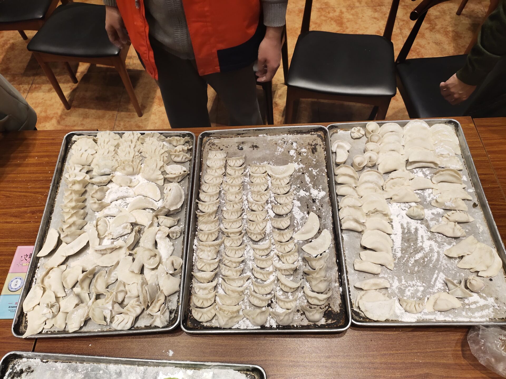 食堂为此次活动提供了精心制作的馅料、五百多张饺皮和蛋糕模具,充分做好各项准备工作。在包饺子过程中,苏书记热情询问了同学们是否有包饺子的经历,并且耐心地教同学们包饺子,同学们都热情高涨,积极参与。大家在欢乐、温馨的气氛中边聊边包,互帮互教,各显神通,相互说笑着。不会儿,一排排独具个性,形态各异的饺子成品就“出炉”了。看着自己包的饺子,同学们的脸上都洋溢着幸福。饺子包完后,同学们还不断用手机纷纷拍照留念,食堂内萦绕着欢声笑语。在期待中,一盘盘热气腾腾的饺子被端上了餐桌,同学们迫不及待地品尝自己亲手包的饺子,可口的味道让大家露出了满足的笑容。一碗碗热气腾腾的饺子,不仅仅让老师、同学们感受到了天元班大家庭的温暖,更收获了快乐和幸福。