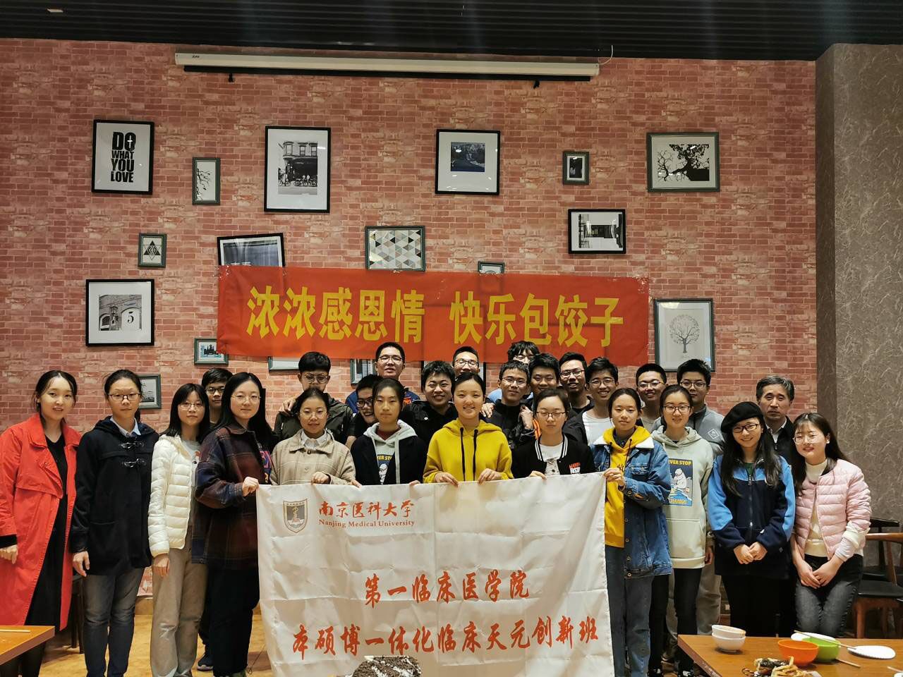 11月24日,伴随着第一场冬雨,为增强班级凝聚力、感受班级温暖、感恩幸福生活,本硕博一体化临床天元创新班全体同学以及辅导员梁瀚元老师和张婷婷老师在江宁第四餐厅开展主题为“浓浓感恩情 快乐包饺子”的主题团日活动。应邀出席此次活动的还有学院党委常务副书记苏荣健。