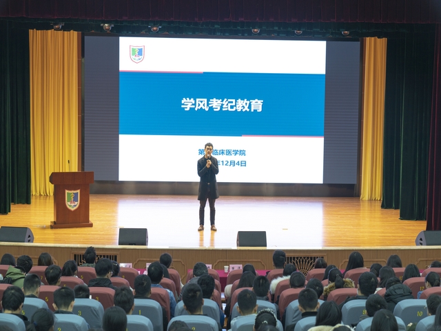 在接下来的学风考纪教育中,熊潇老师从大学生日常行为规范和期末考试注意事项两部分内容展开。带领同学们回顾了《南京医科大学学生行为规范十要十不要》,从心理调整、宿舍关系、杜绝作弊、团结紧张、严肃活泼5个方面给同学们做了考前动员和心理疏导。