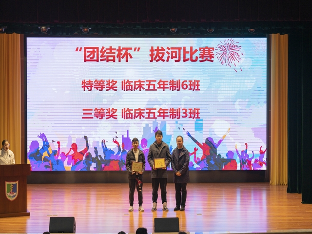 会上,回顾了18级全体同学一学期来的各项活动的参与和收获。首先进行优秀共青团员、学院秋季读书报告会、校运动会等活动的颁奖仪式,接下来由来自医学检验班的班长陈明辉同学作为获奖学生集体代表上台发言,他分享了班级备战运动会团体中长跑的故事,对运动会中给予帮助的老师同学表达了感谢;来自临床5+3一体化1班的朱烨同学作为获奖个人代表上台发言,她真挚地向同学们诉说了自己学医的初心,并希望大家在学习的同时积极参加更多活动,不断提升自己。最后,盛彤彤书记做总结讲话,肯定了18级一学期以来取得的成绩,勉励获奖的同学再接再厉,有诚信有责任有担当,带着感恩的心续写一临的荣誉与辉煌。