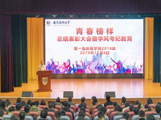 12月4日,第一临床医学院2018级在大学生活动中心召开“青春榜样”总结表彰大会暨学风考纪教育。校团委副书记王铭泽老师,学院党委副书记、副院长盛彤彤老师,学工处思想政治教育办公室主任高兰天老师受邀莅临活动现场,2018级辅导员熊潇老师以及2018级全体学生参与活动。活动由辅导员陈琪波主持。
