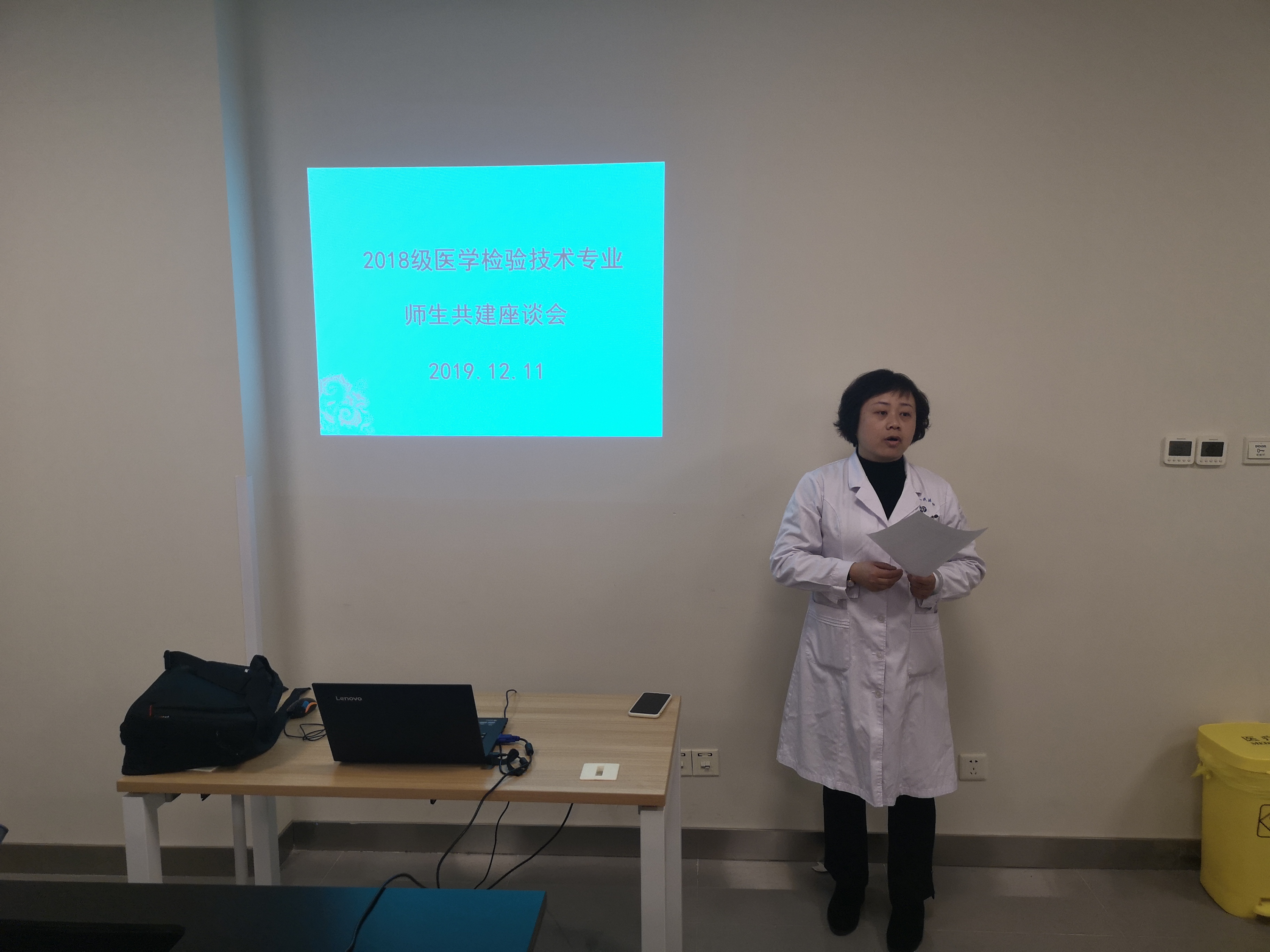 12月11日,2018级医检班在成长导师王芳教授的组织下,参加医学检验技术专业师生共建座谈会。第一附属医院检验学部相关带教老师与18级医检班全体同学参加会议。
