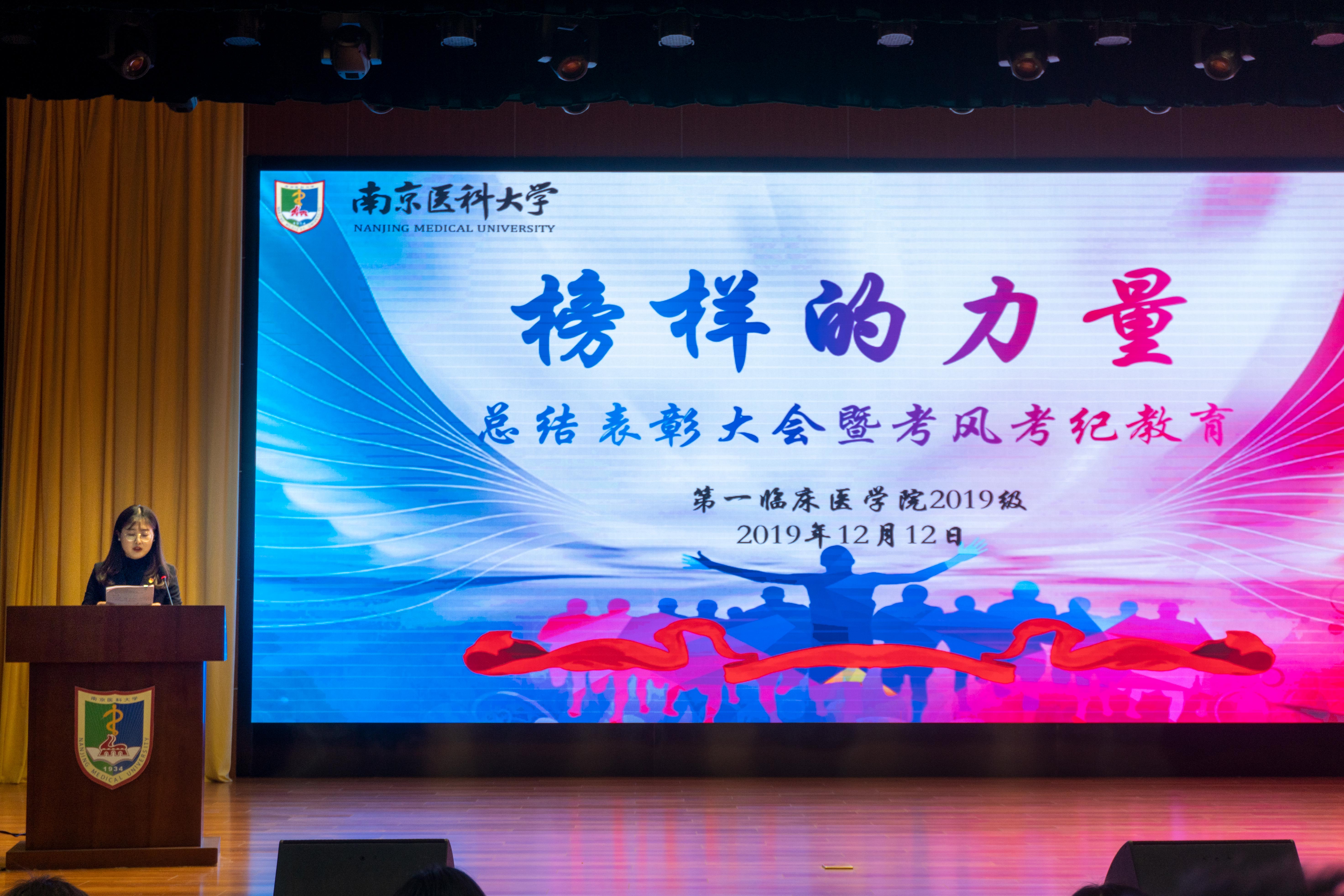 在颁奖环节,颁奖嘉宾依次为在军训、校运动会、 “最美笔记”活动、“文明寝室”评比以及“团结杯”拔河比赛中获奖的个人和集体颁奖。随后,盛书记上台作总结发言,她首先肯定了2019级同学在入学短短的几个月以来取得的成果,肯定了学工办两位辅导员的辛苦工作,鼓励同学们能够向榜样看齐,努力学习,再接再厉,不断创造新的辉煌。
