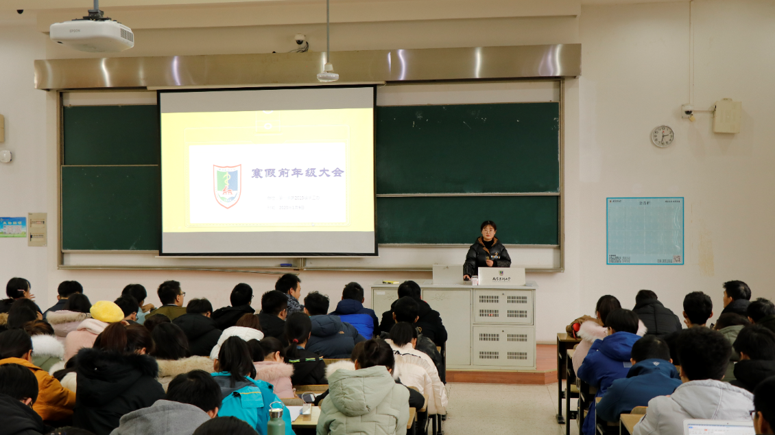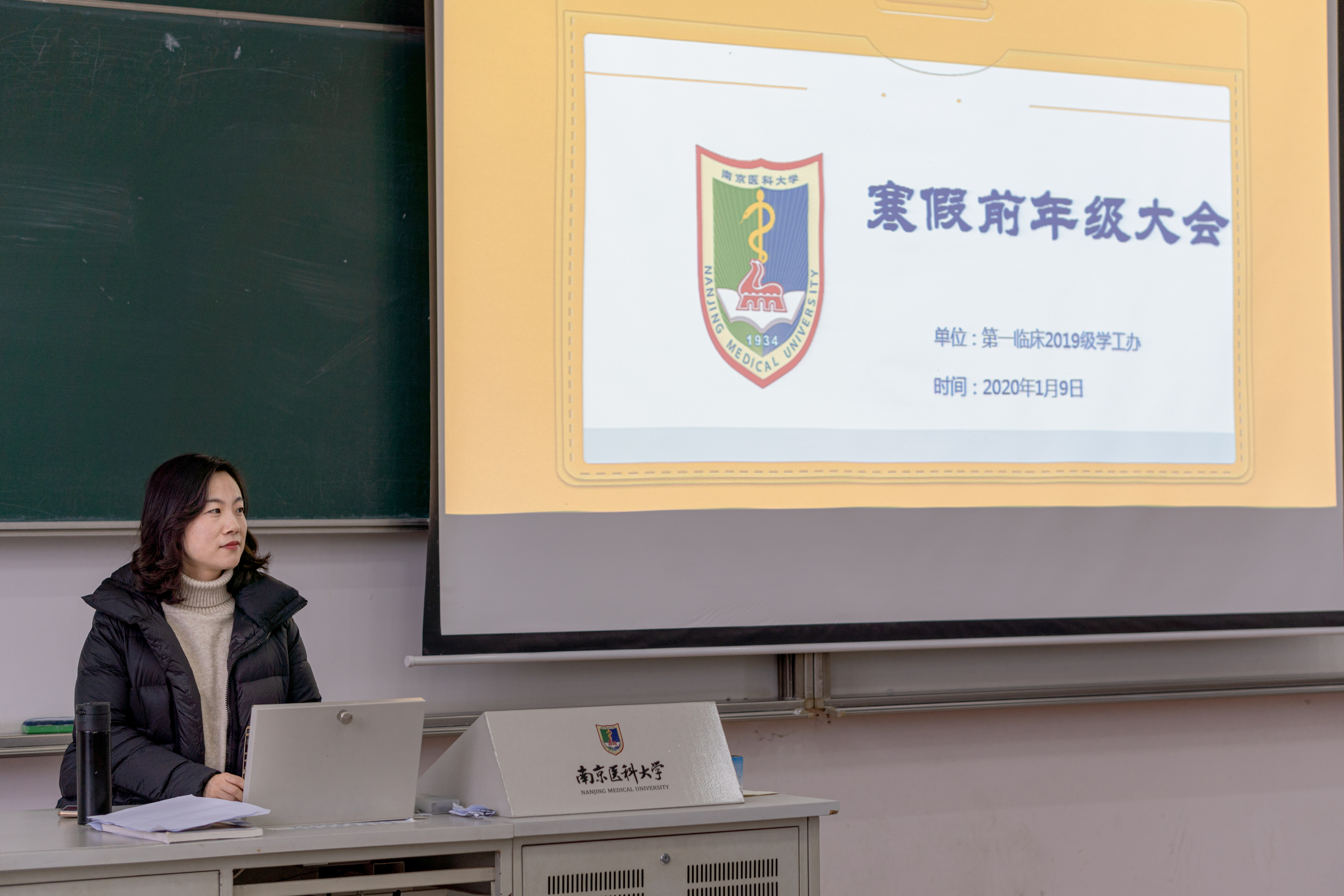 1月9日下午,2019级召开寒假前年级大会,学院副书记副院长盛彤彤、学工办辅导员以及全体同学参加。本次年级大会在阶4和阶6分两场同步进行,分别由盛书记和张老师主持。