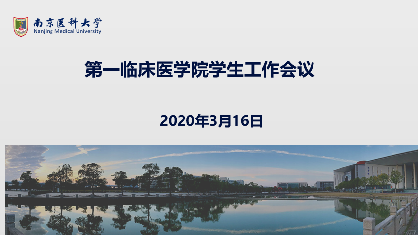 为进一步落实疫情防控工作、扎实推进新学期学生工作,3月16日上午,第一临床医学院召开新学期学生工作视频会议。院党委常务副书记苏荣健、全体辅导员参加,会议由副书记副院长盛彤彤主持。