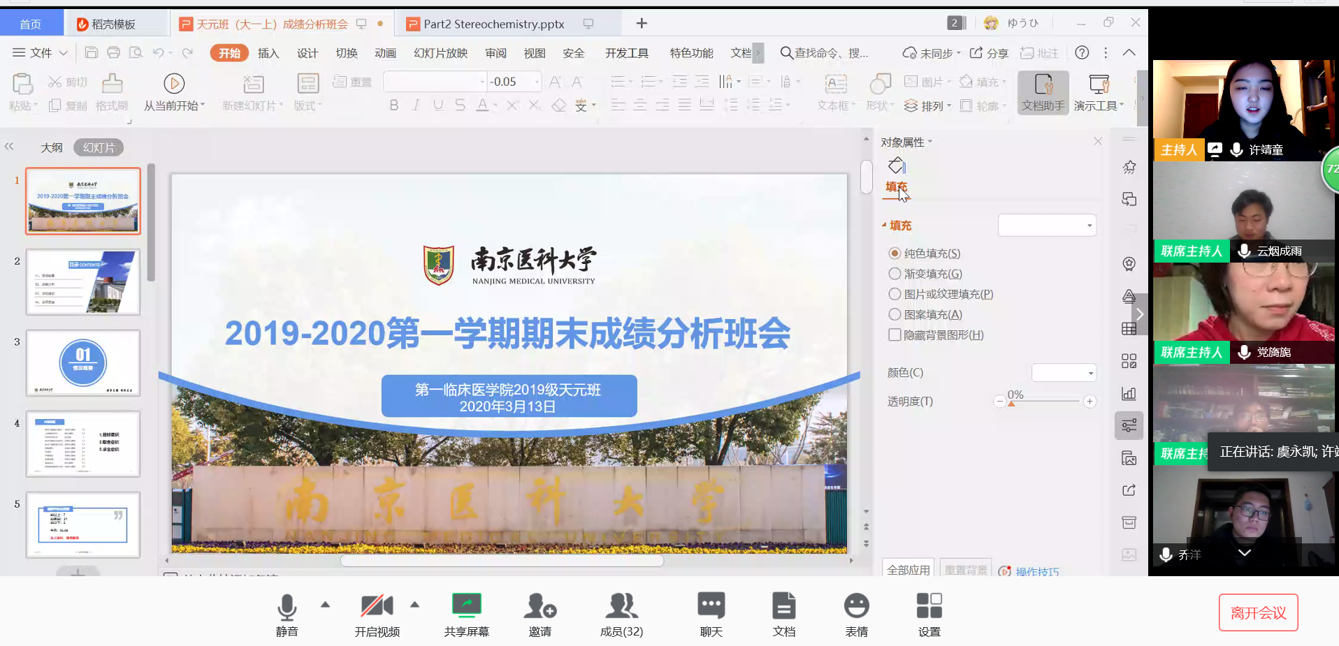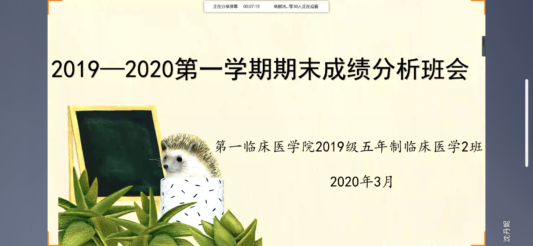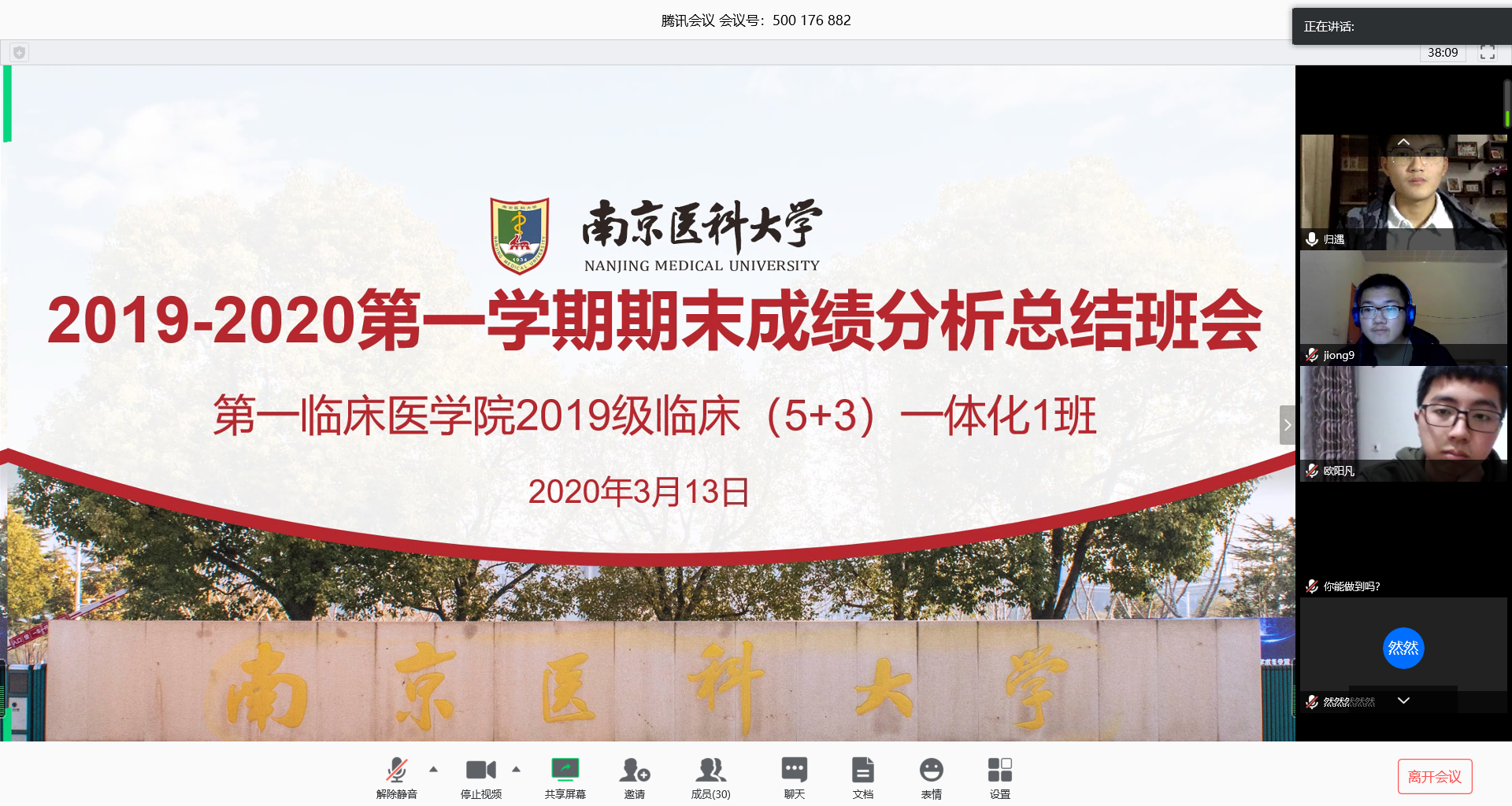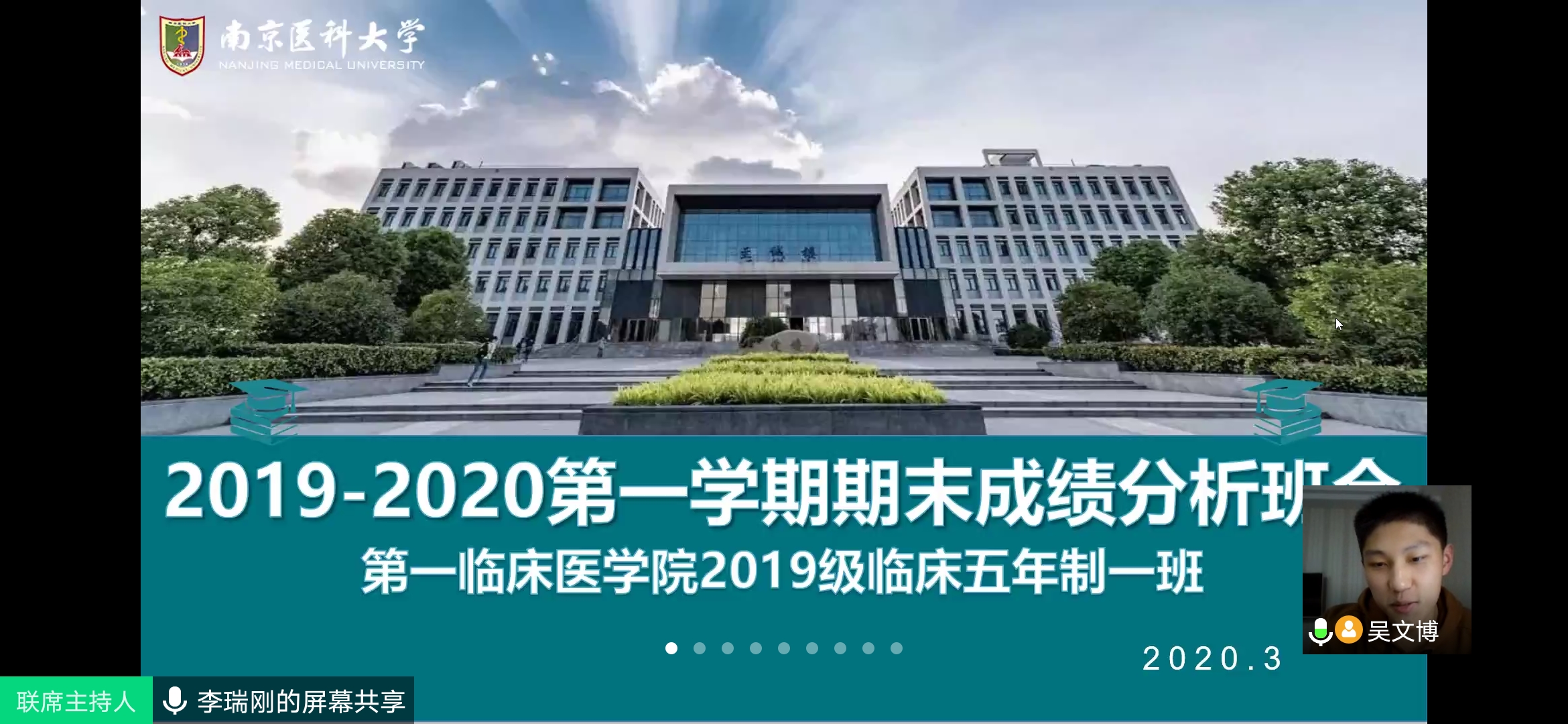 3月12日—3月15日期间,第一临床医学院2019级各班级陆续召开了兼职班主任疫期交流分享暨成绩分析线上班会。