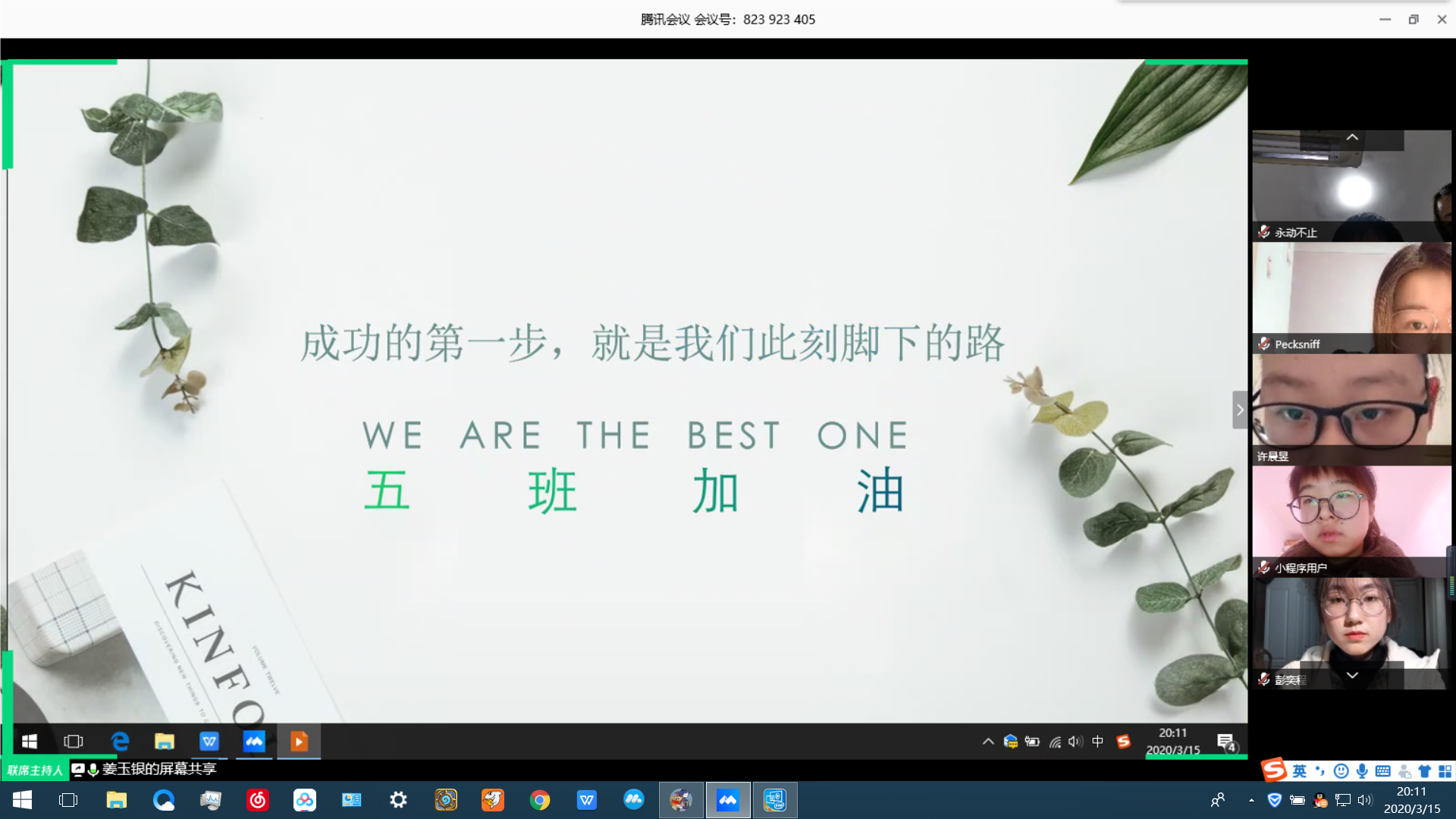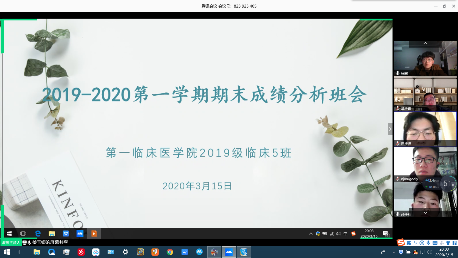 3月15日晚,19级临床医学五年制5班全体同学召开了兼职班主任疫期交流分享暨成绩分析线上班会。参加本次班会的有班主任倪娟老师、辅导员张婷婷老师和5班全体同学。