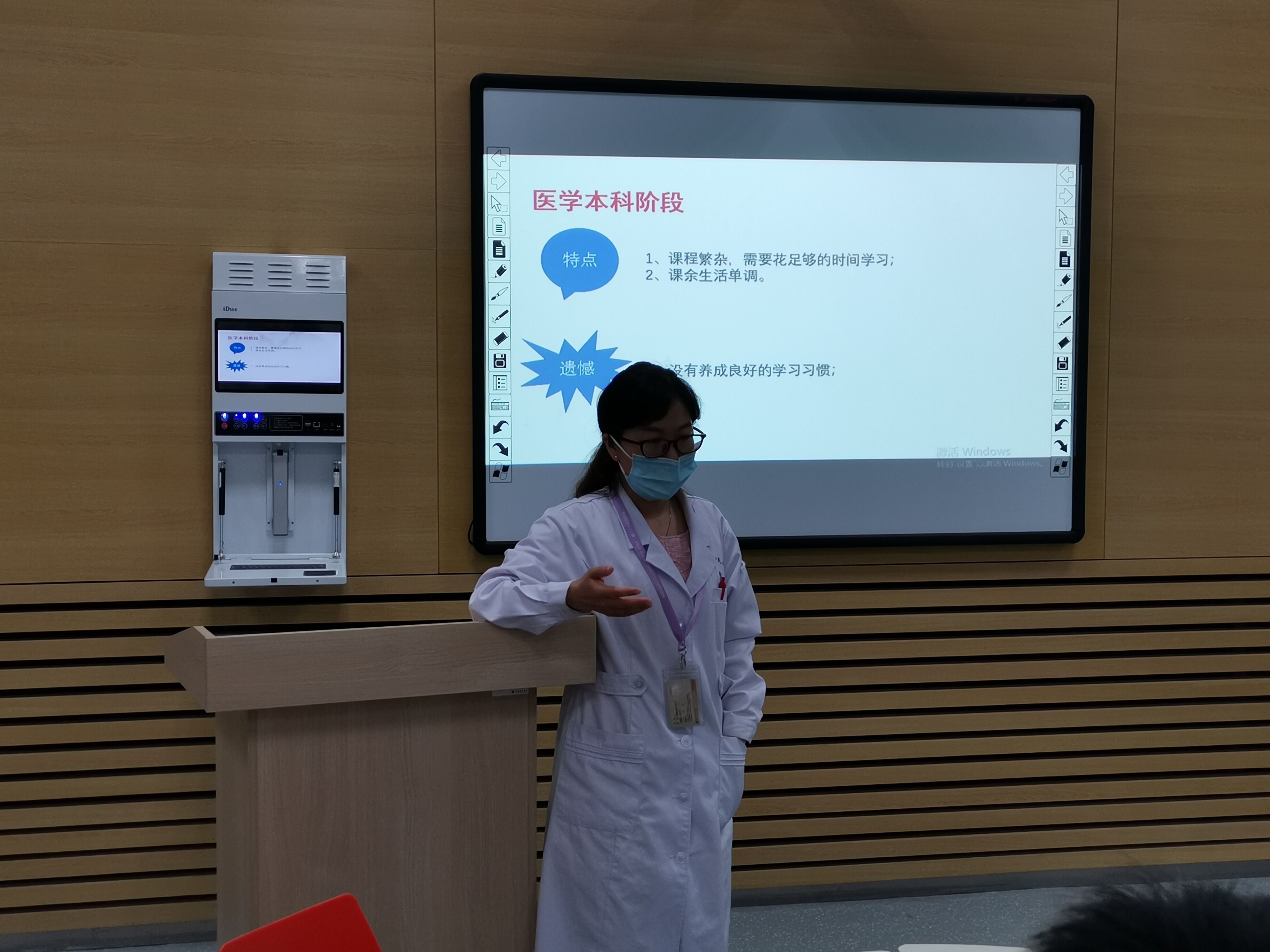 梁艳老师分析了本科的学习特点,告诫大家在巩固好自己专业课的同时,也要加强英语的学习,为以后的科研打好基础。此外,梁老师建议同学们在低年级的时候就要积极地参加科研,增加自己的实践经历。梁老师还结合自身学习经验,告诉大家要将病例结合书本知识加强理解记忆,勤思考,多动笔。许佳丽老师分享了读文献的方法,并鼓励同学们多读文献,积累丰富的知识,为以后的科研做好准备。许老师着重强调了实习经历,建议大家把自己当成住院医师,发挥主观能动性,把实习当做锻炼自己的机会,也要在此期间思考未来的发展方向。