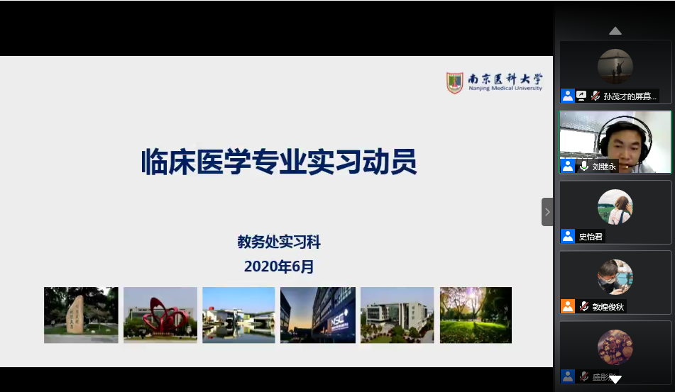 6月18日下午,第一临床医学院召开2016级五年制临床医学专业线上实习动员大会。参加本次线上会议的有教务处副处长刘继永、实习科科长孙茂才,学院常务副书记苏荣健、副书记盛彤彤、学工办副主任敦煌俊秋、史怡君老师以及2016级五年制临床医学专业全体学生。实习动员由盛彤彤副书记主持。