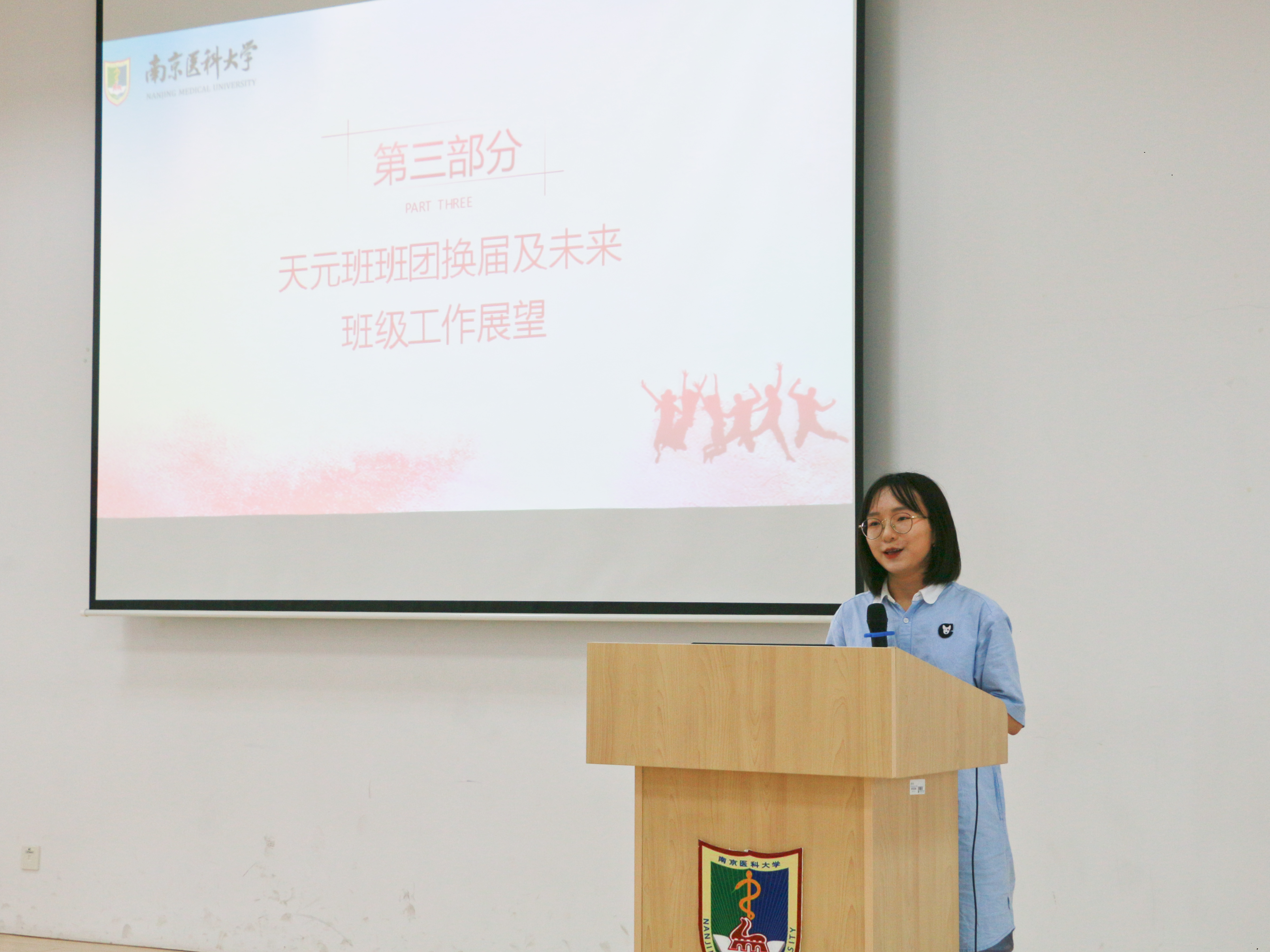 在班团干部换届环节,班长于姜、团支书刘敏对天元班大一学年的学习、工作、开展的活动和获得的荣誉进行总结汇报。回顾过去,同时也有要展望未来。新一届班长李佳玮、团支书王浩锋对班级未来的工作进行了规划与展望,并表示会团结全班同学、认真负责地做好班级工作,带领天元班走向更好的未来。