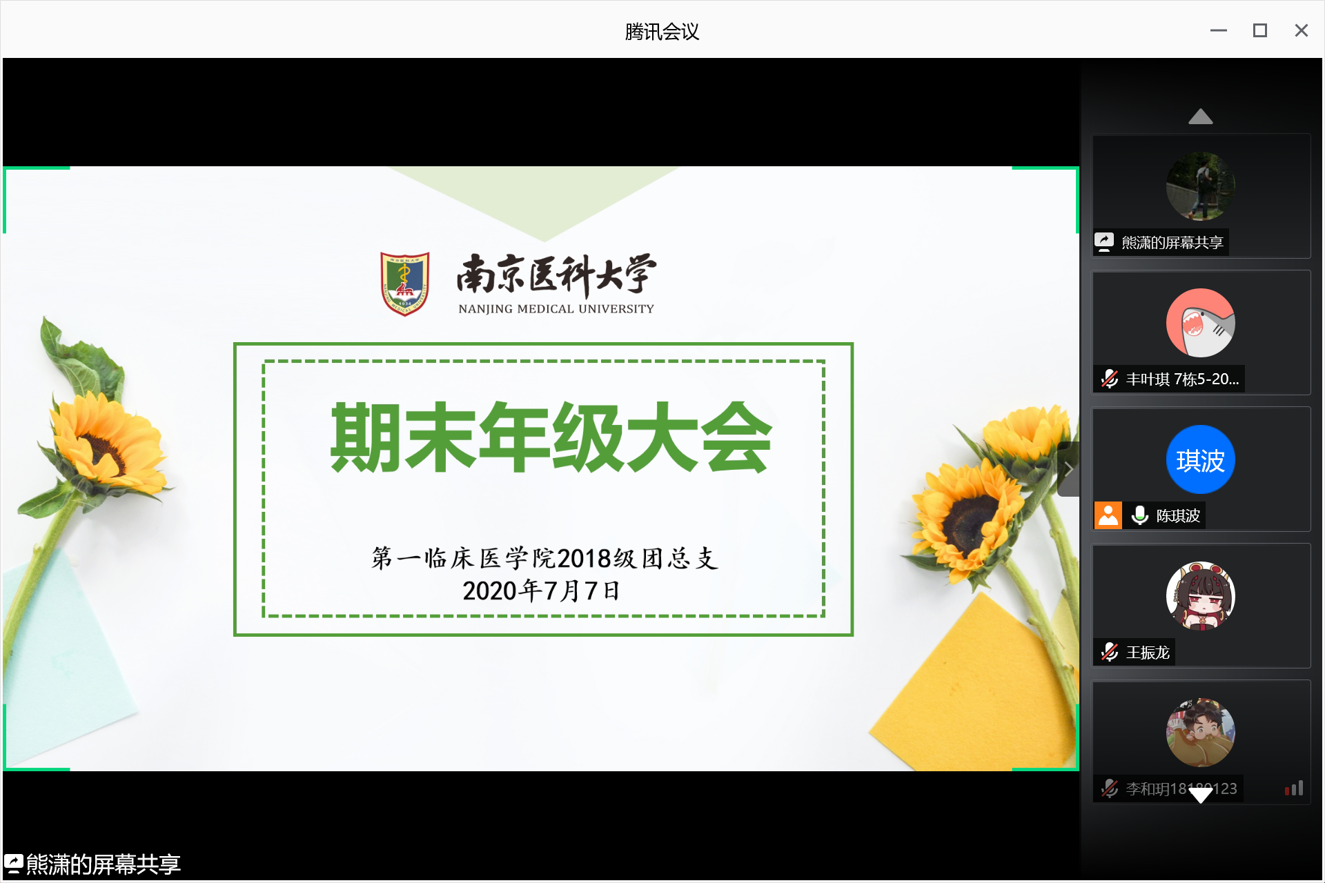 7月7日,第一临床医学院2018级学工办,召开2019-2020学年第二学期期末年级大会。辅导员熊潇、陈琪波老师以及2018级全体同学参加会议。