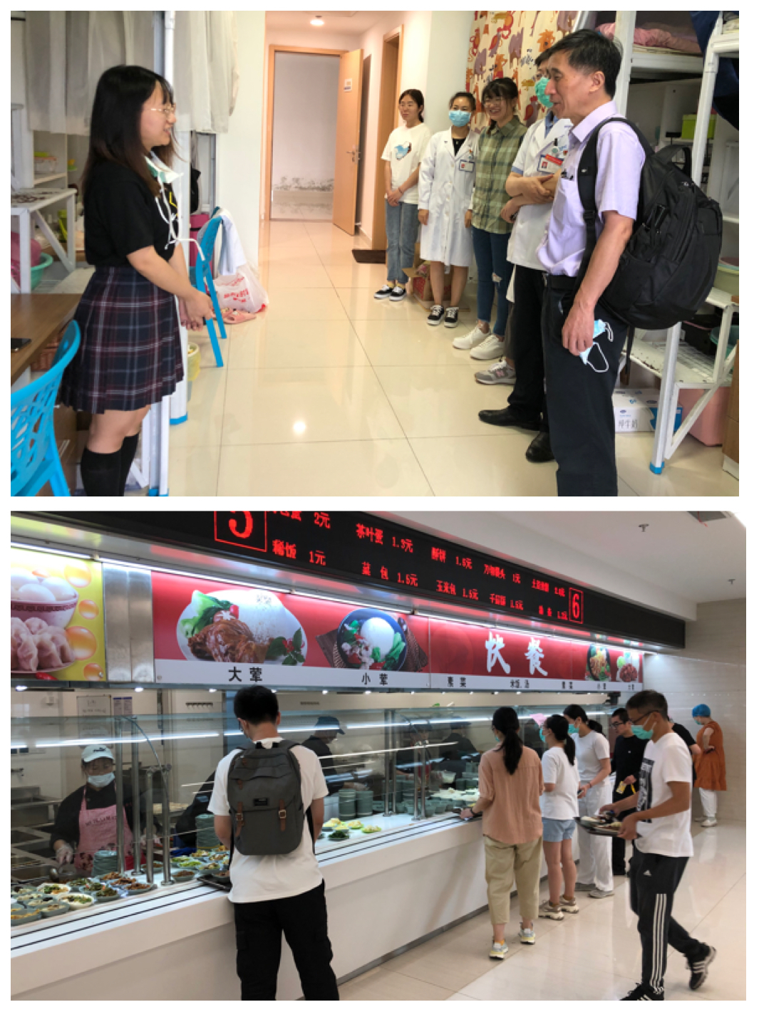 学院领导老师和实习医院科教老师进行全面深入交流,了解实习同学入院以来的实习、生活、纪律和实习组长等各方面表现,深入医院科室、教室、宿舍和食堂等区域,实地看望和了解学生实习和生活情况、存在的问题和困难。