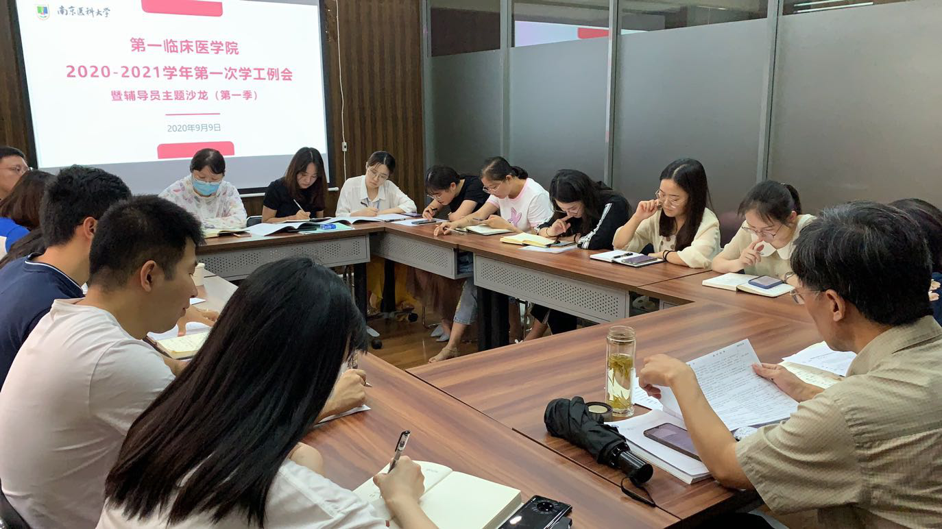 9月9日下午,第一临床医学院召开2020-2021学年第一次学工例会暨辅导员主题沙龙(第一季),学院党委常务副书记苏荣健,副书记、副院长盛彤彤和全体本科辅导员老师参加了本次会议。
