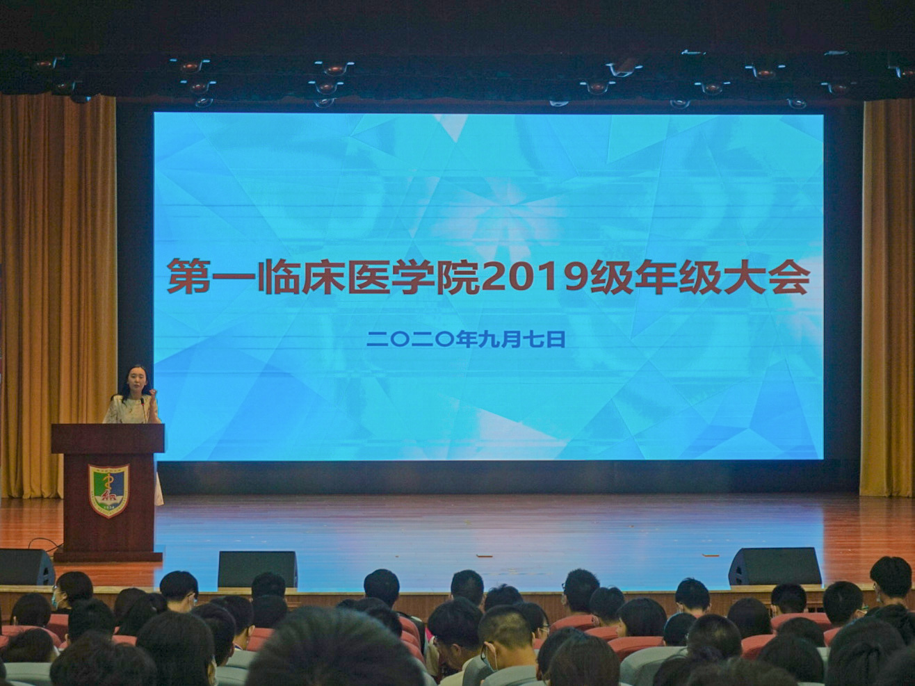 9月7日,第一临床医学院2019级于大学生活动中心报告厅召开新学期年级大会,学工办梁瀚元、张婷婷老师及2019级全体学生参加。
