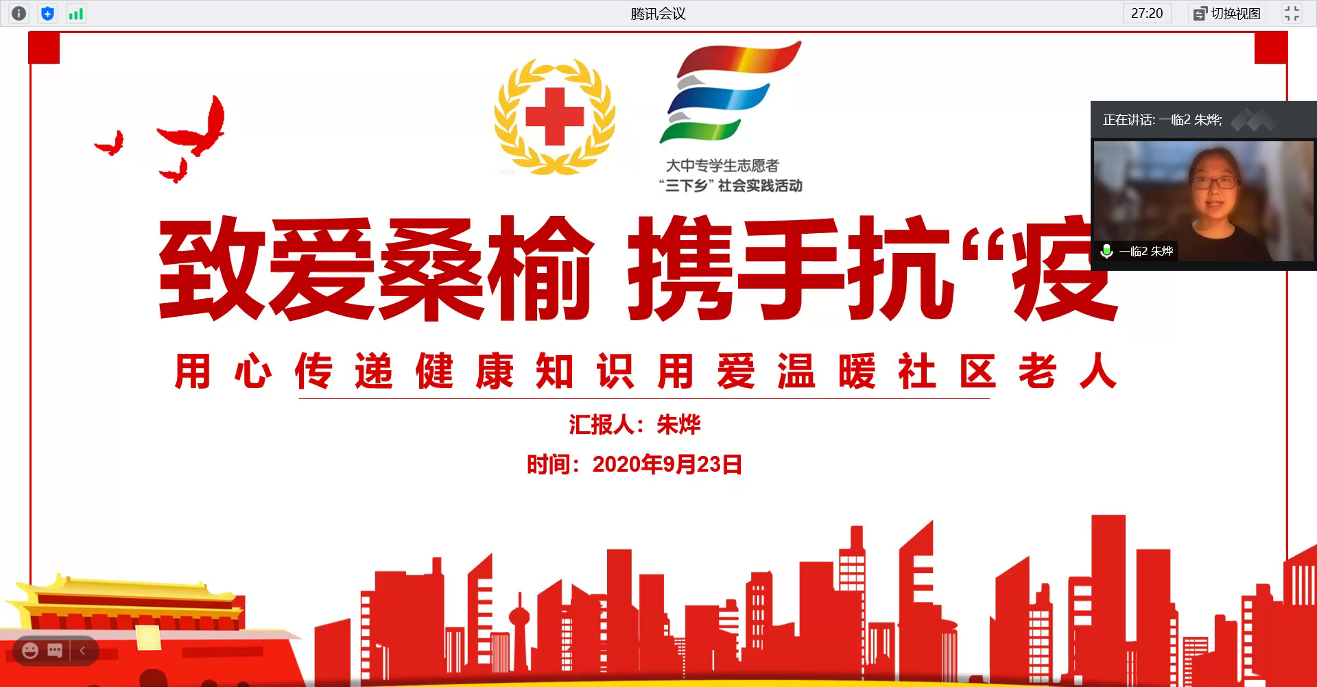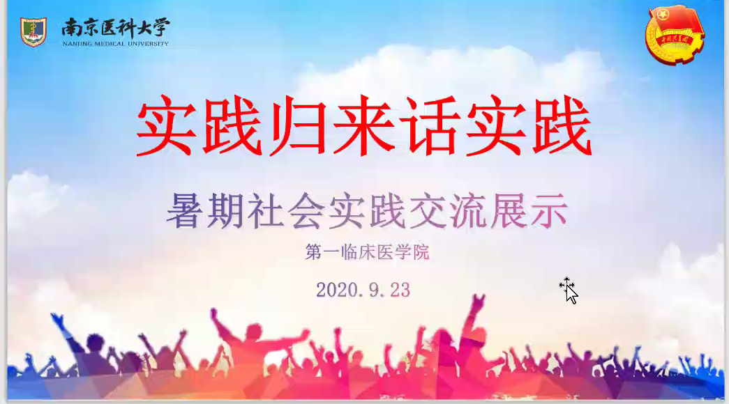 9月23日,第一临床医学院依托腾讯会议开展暑期社会实践交流展示活动。参与本次活动的有第一临床医学院党委副书记、副院长盛彤彤老师,18级辅导员熊潇老师、陈琪波老师,19级辅导员梁瀚元老师、张婷婷老师,以及各实践团队的队长、通讯员和安全员同学。本次交流活动由汤念枫同学主持。