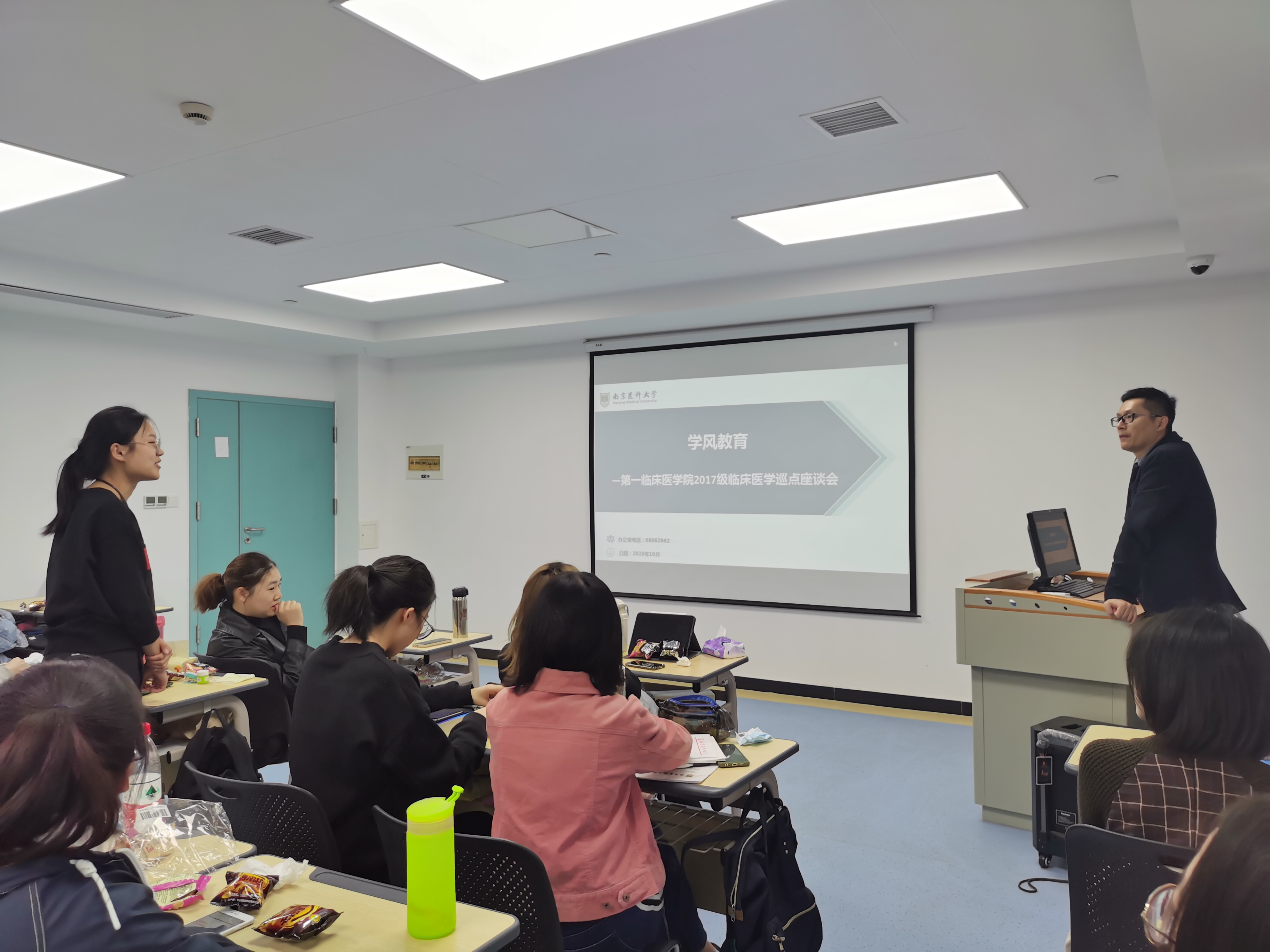 10月21日,第一临床医学院2017级在徐州临床医学院住培楼4楼1教室召开了学风教育巡点座谈会,教务处实习科科长孙茂才、辅导员王榆、秦冰以及2017级五年制临床专业6班全体同学参加了此次座谈会。