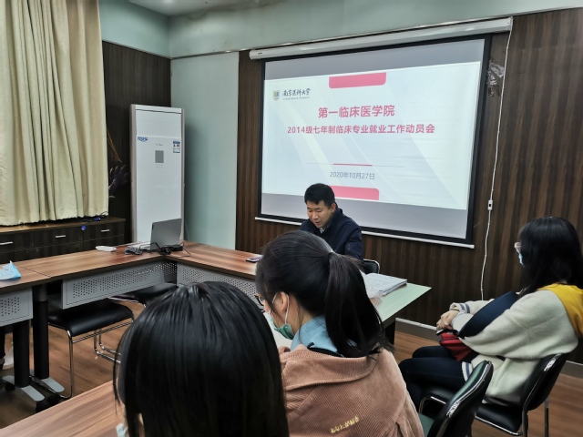 10月27日,第一临床医学院2014级七年制临床专业在五台校区综合服务中心会议室召开在宁班级就业工作动员会。2014级七年制辅导员王建伟老师、2014级七年制临床专业在宁班级同学参会。