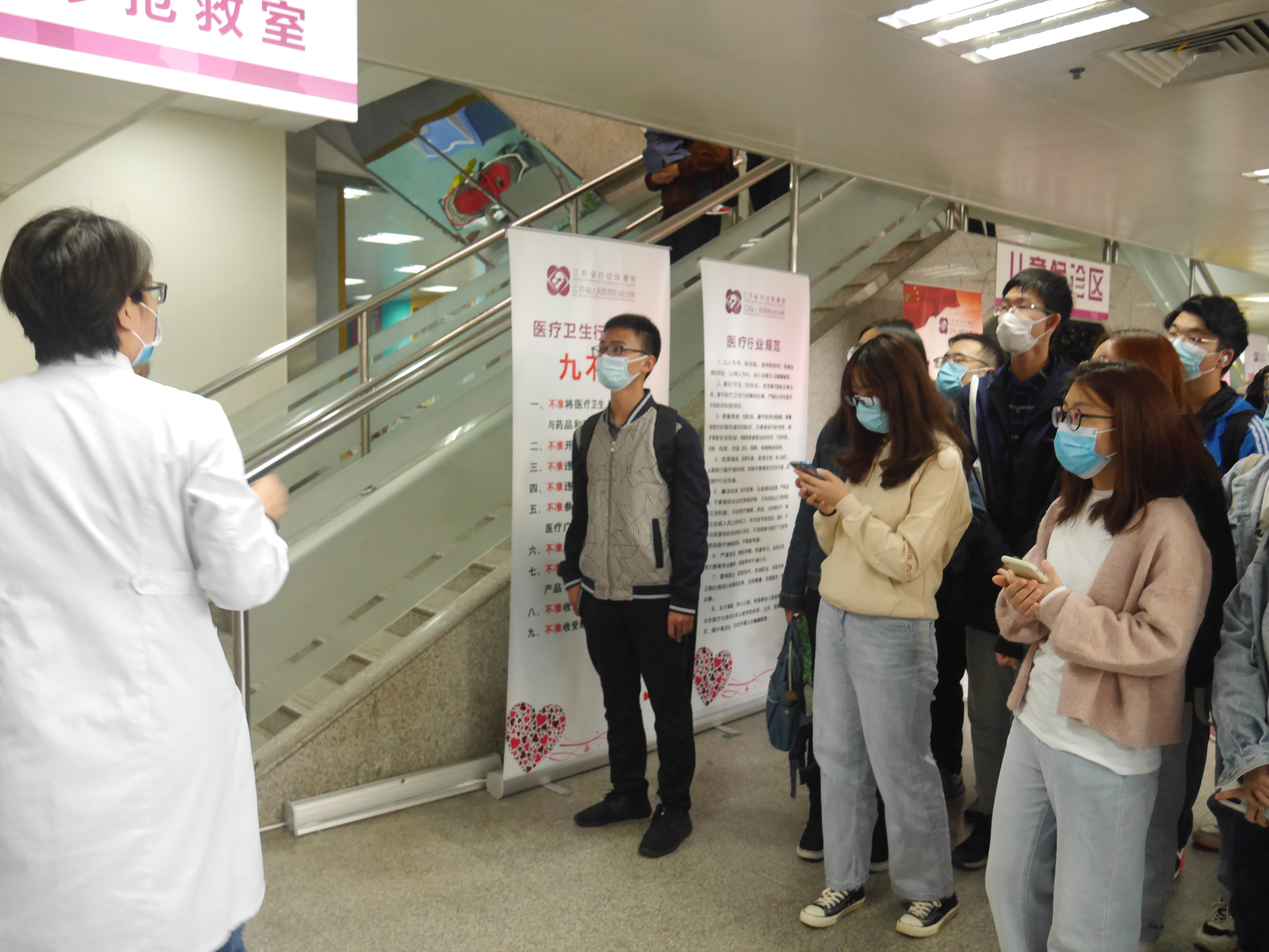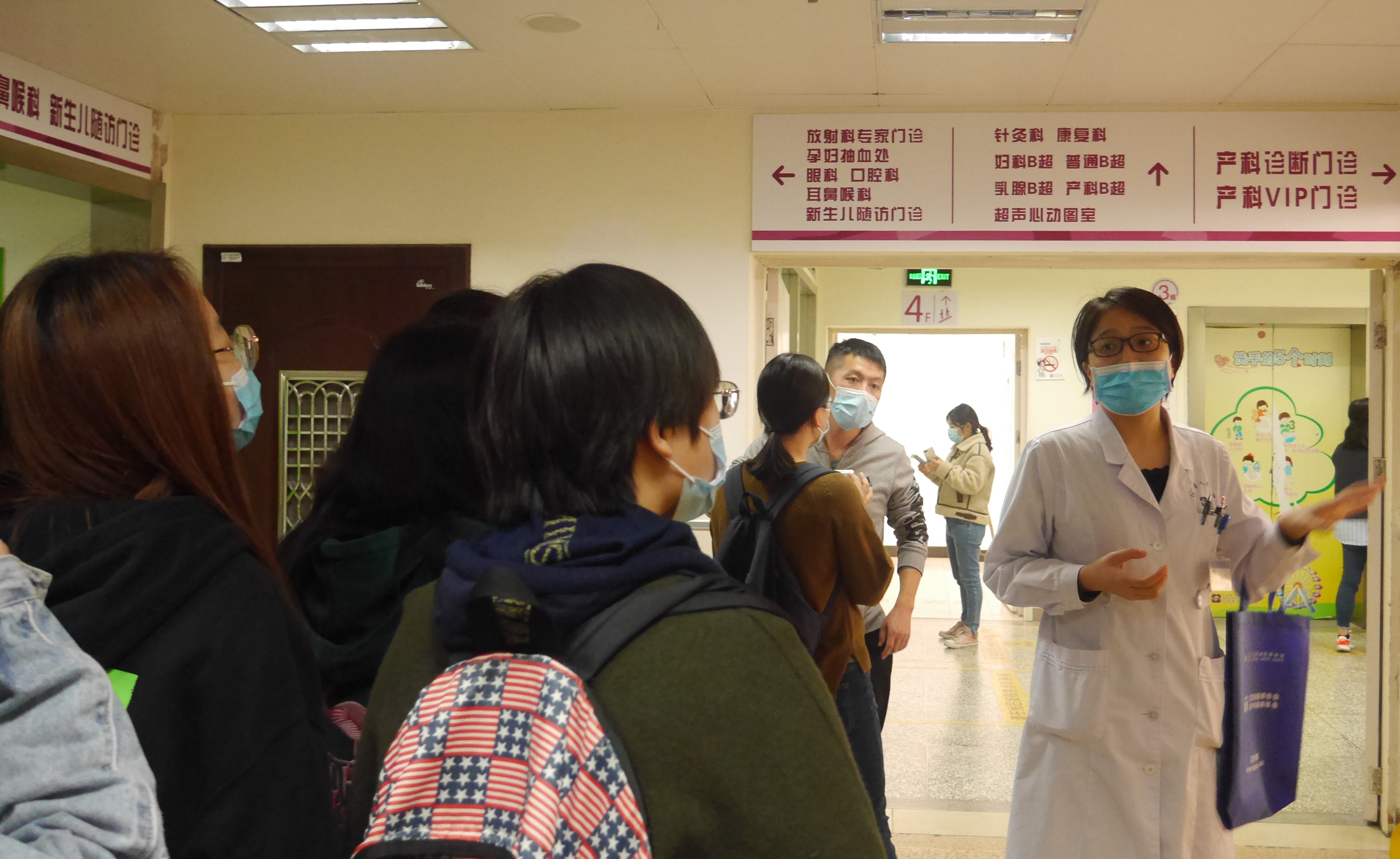 在朱姝老师的带领下,同学们参观了医院门诊部,对产房、门诊的分区结构有了大致的了解。接着,在病房区的会议室里,朱姝老师与大家分享了她的学医经历。同学们积极发言,认真倾听,受益匪浅。
