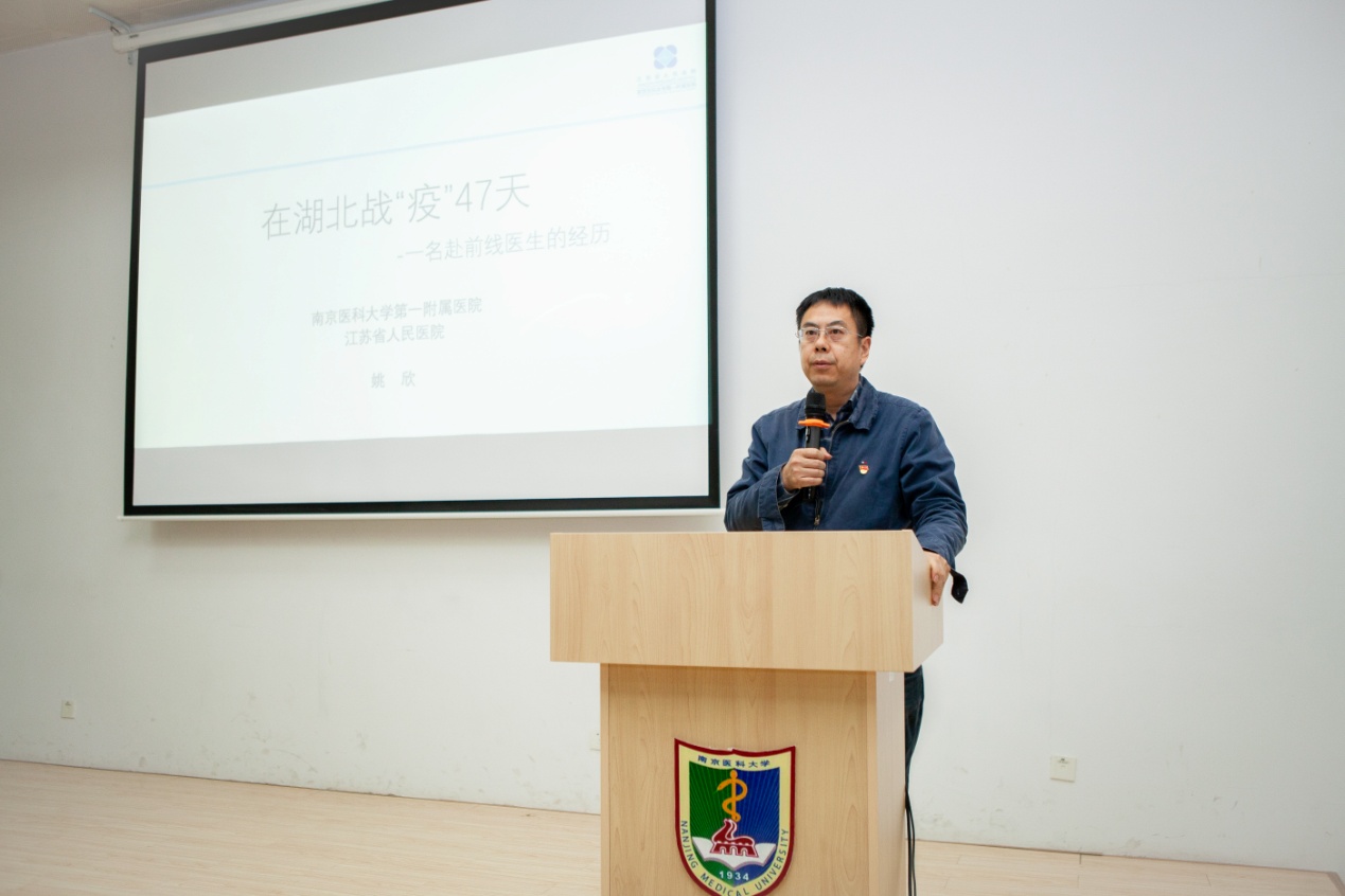 首先,天元班班长张桢同学作为学生代表分享学生心声,他从军训感悟、课程学习、课后活动和教学资源等几个方面阐述了入学来的见闻和收获,表达了为成为一名优秀医生而不断奋斗的坚定志向。导师分享环节,姚欣教授和同学们分享了“我与南医的三十年”的故事,讲述了自己三十年前考入南京医科大学到成为一名优秀的医生的成长经历。姚教授还生动详细地叙述了自己在湖北战“疫”47天的经历。从接到命令、组织出发,再到抵达黄石、展开支援,最后抗疫成功、圆满回乡,姚欣教授的分享引人入胜,发人深省。在最后的交流提问环节中,针对同学们提出的“对于医患关系未来发展的看法”、“如何应对灾难后患者心理上的创伤”等问题,姚欣教授结合自身经历,一一耐心解答。最后,全体与会成员合影留念,在大家的欢声笑语中,本次交流会圆满结束。