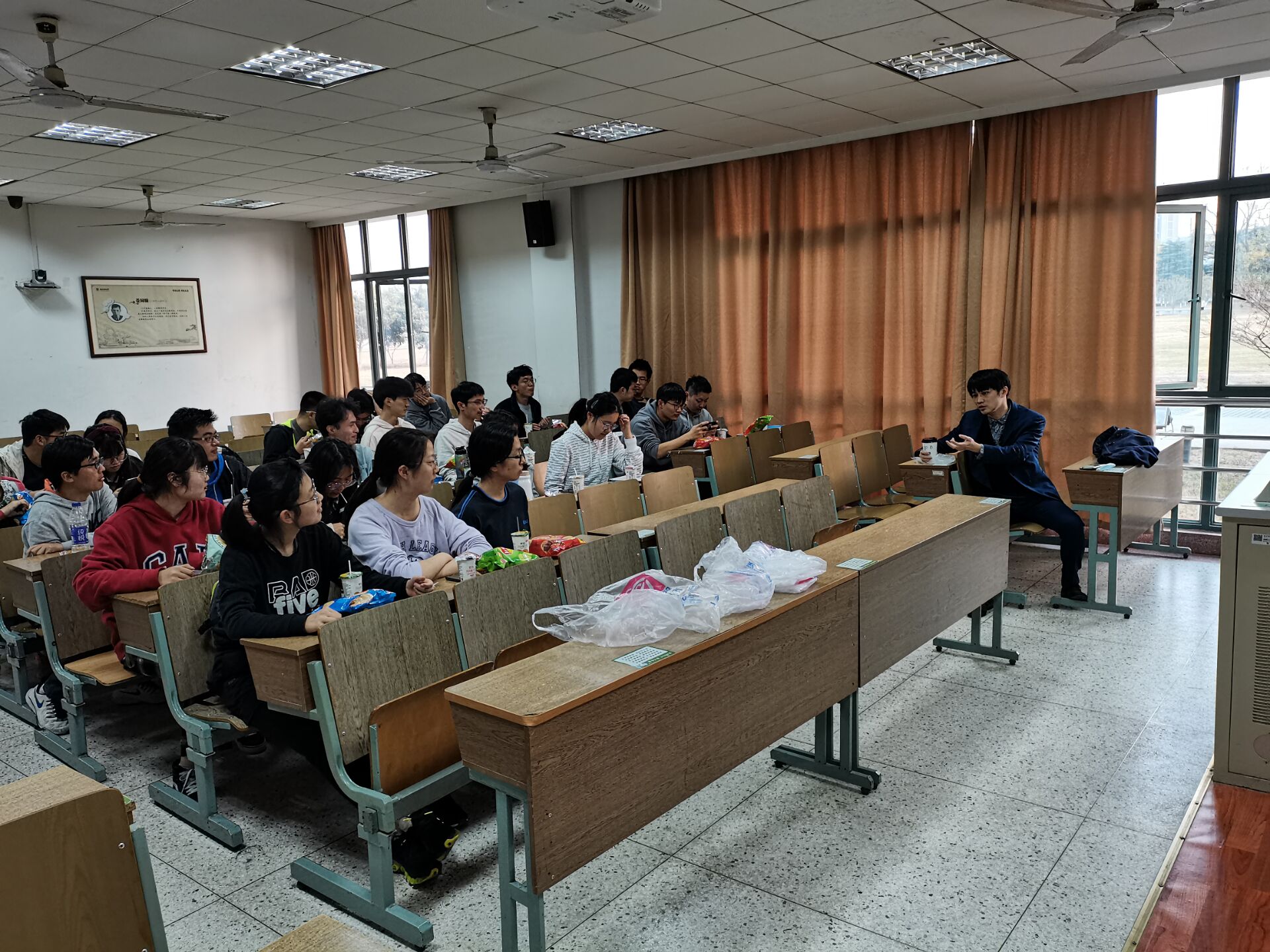 见面会上,各位同学与史老师进行相互介绍,老师讲述了自己的大学生活,诙谐幽默的语言使得师生之间的关系快速拉近。随后,就同学们关心的实习驻点、导师选择等问题,史老师一一分享了自身的经历,加深了同学们对医院各个科室的了解。最后,老师从自己入党的过程开始,引导同学们爱党爱国,坚定理想信念。