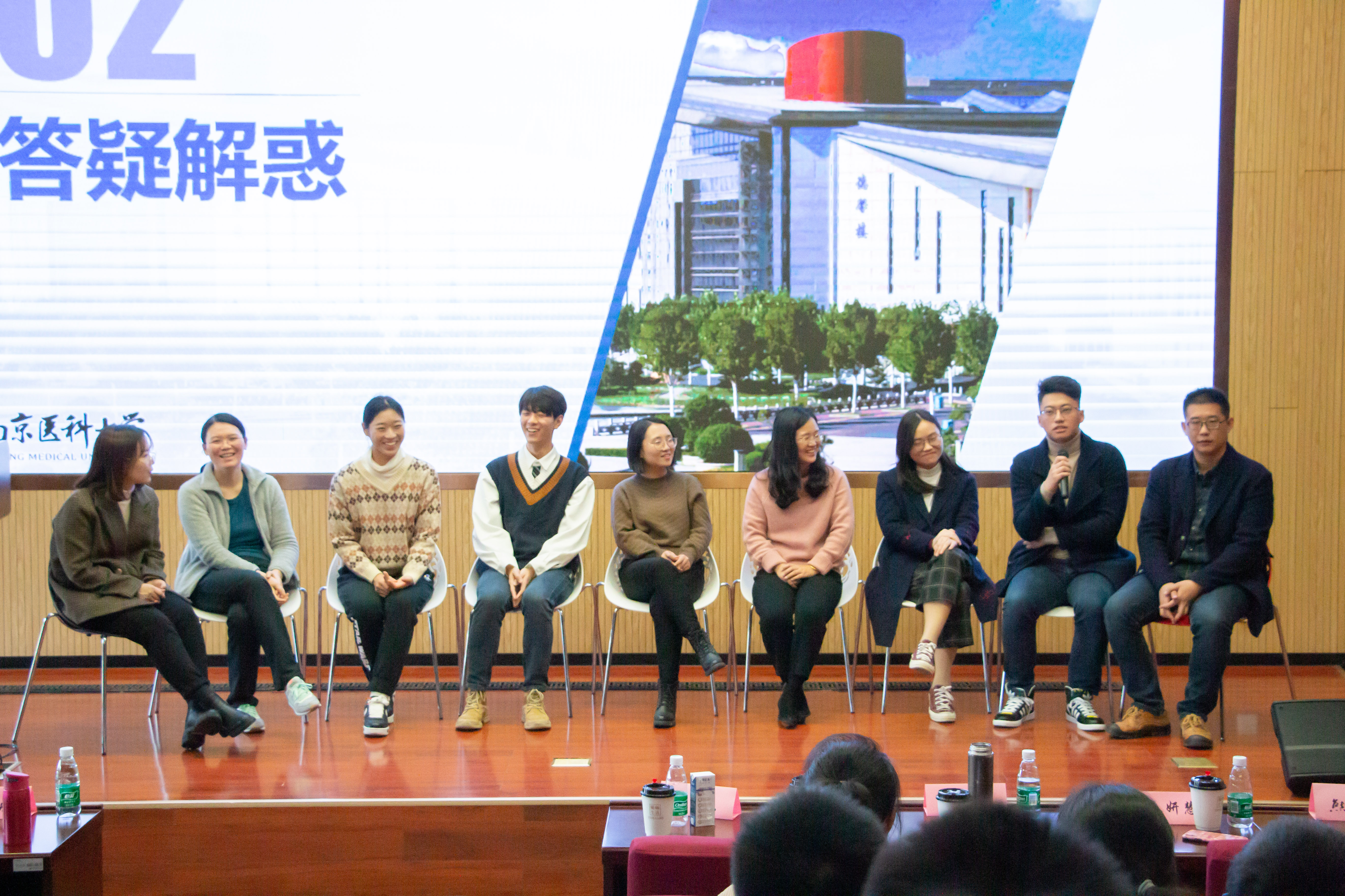 之后交流会进入主题分享环节。五位主讲人先后上台,各有侧重地向同学们分享了各自的经验。蒋婉岚学姐鼓励大家专注于学习,同时也强调了医德的重要性,并以三个好——“医术好、医德好、学习好”勉励大家。陈雪学姐以自身的历程为主线,提出了热爱集体生活,提升领导力,选择有兴趣的研究方向,明确目标,持之以恒等建议。王露阳学姐则由大学生活二三事谈起,提出几个需养成的好习惯:学会时间管理、做好充足的准备、脚踏实地。张传杰学长专注于科研,他强调了当下大数据、信息学的时代背景,鼓励本科生从这方面开启科研之路。梅杰学长则是从科研、学习、学生活动三个方面都对大家进行了全面细致的指导。