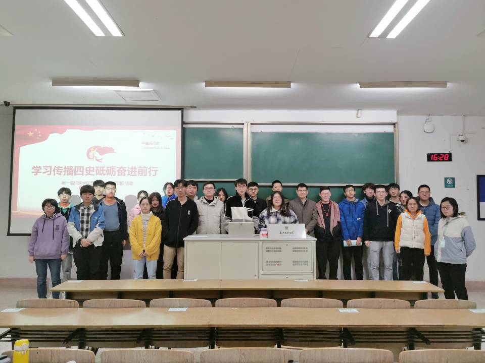 首先,班长黄启元同学就“四史”为主题进行介绍,从为什么要学习“四史”、学习“四史”的价值在何处和学习“四史”的目标是什么三个方面分别进行了汇报。通过深入开展党史、新中国史、改革开放史、社会主义发展史学习教育活动,进一步引导大家全面了解我们党成立以来、新中国成立以来以及改革开放以来的重大事件、重要会议、重要文件、重要人物,了解我们党领导人民进行艰苦卓绝的斗争历程,了解中国近代以来的斗争史、我们党成立以来的奋斗史、新中国成立以来以及改革开放以来的发展史,深刻认识红色政权来之不易、新中国来之不易、中国特色社会主义来之不易,深刻把握党的历史发展主题和主线、主流和本质,深刻理解中国共产党为什么“能”、马克思主义为什么“行”、中国特色社会主义为什么“好”,不断从中深入领会学习马克思主义理论的重要意义,感悟马克思主义的真理力量,持续同学们爱党爱国爱社会主义的巨大热情,增强“四个自信”,做到不忘历史、不忘实心、知史爱党、知史爱国。