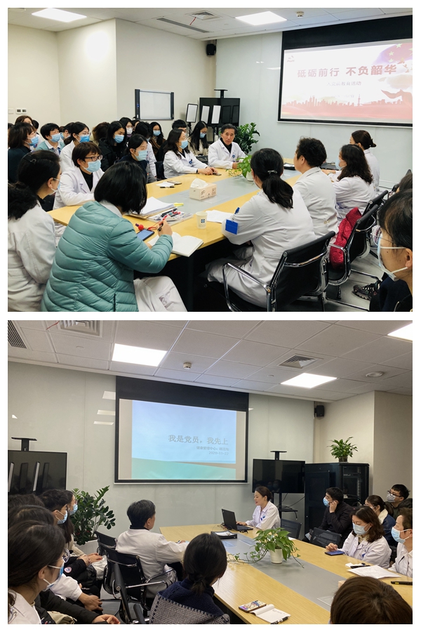 11月27日中午,第一临床医学院在医院健康管理中心开展了主题为“砥砺前行,不负韶华”的党建实境课堂教学活动。学院党委常务副书记苏荣健、一附院健康管理中心主任张群、门急诊部党总支书记徐婕、学院相关部门负责人及老师、学生党员发展对象和实习生党员以及健康管理中心党支部全体党员,共50余人参加,此次活动由健康管理中心副主任许年珍主持。