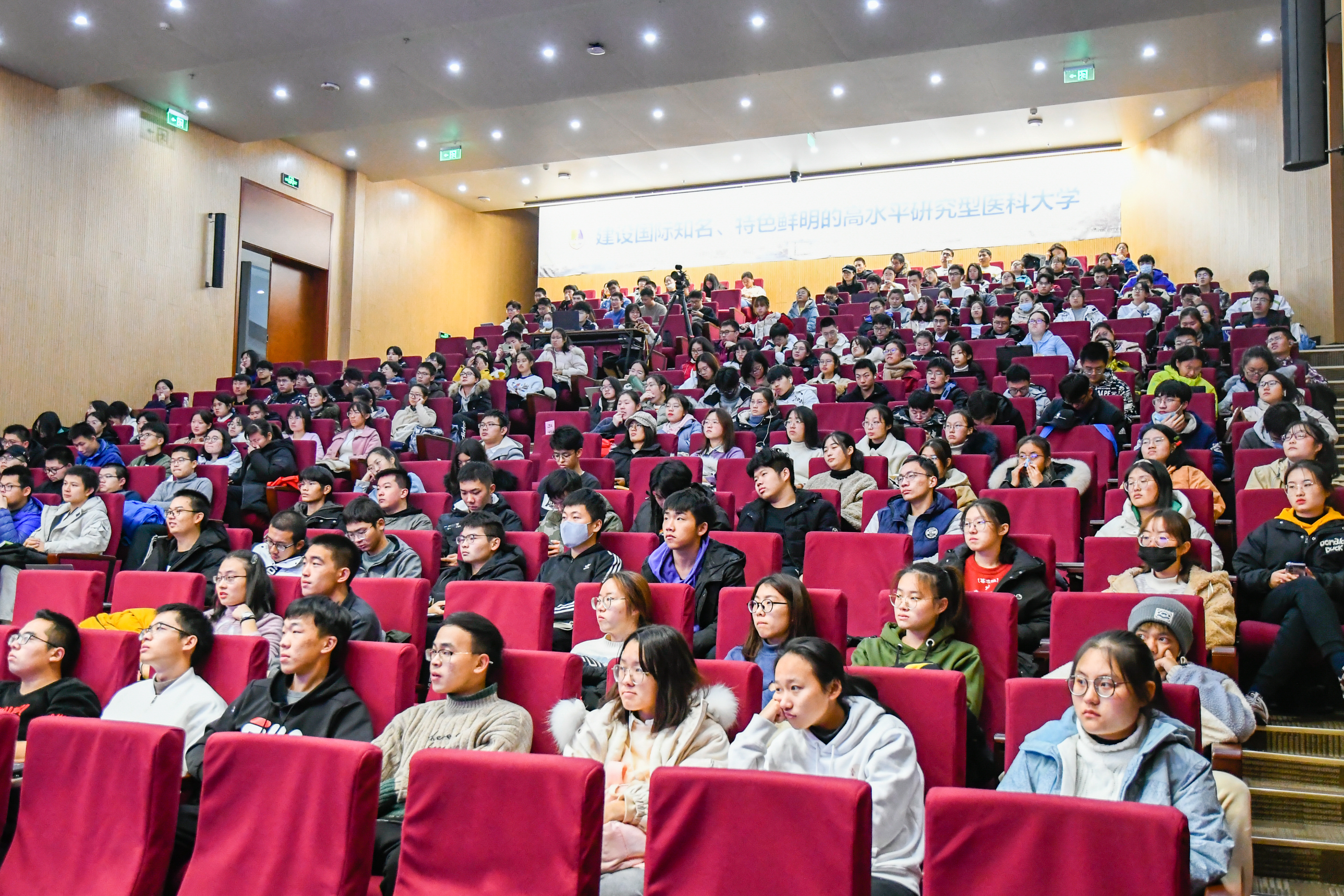 胡晓雯老师从参赛要求、赛事流程和赛事意义等方面重点介绍了“互联网+”创新创业大赛和全国大学生计算机设计大赛。作为这两项赛事的指导老师,胡晓雯老师亲眼见证着每一位参赛选手的成长与蜕变,鼓励学生们在比赛中锻炼创新创业能力,成为一个更好的自己。朱一超老师以“基础与临床结合的创新科研思维”为主题,阐述了自己对于创新创业的独特看法。鉴于基础临床隔河相望的窘迫现状,朱一超老师以两项大学生创新研究课题为例,揭示了医学生联系临床实际,投身科研实践的重要意义。