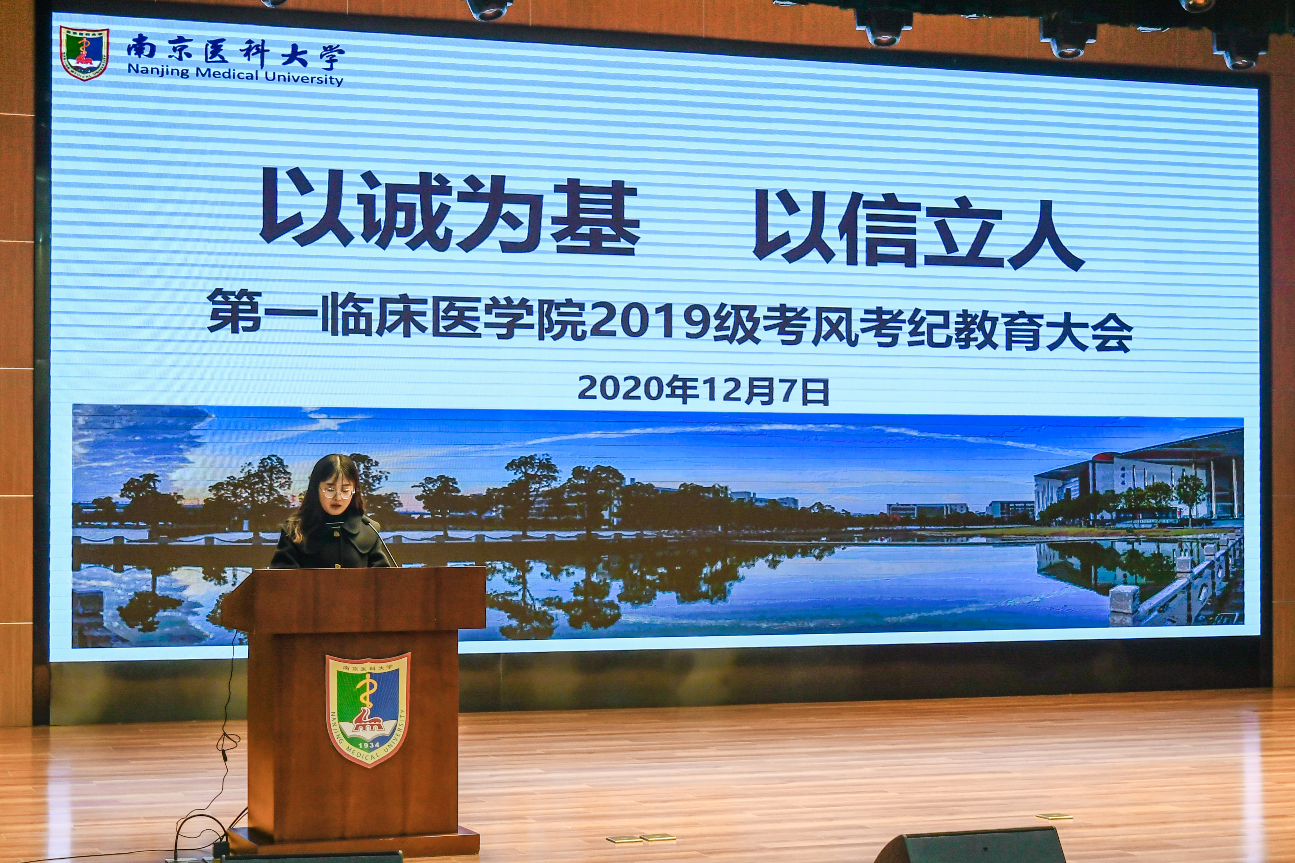 12月7日,第一临床医学院2019级于大学生活动中心召开“用榜样力量,绘青春底色”总结表彰大会暨考风考纪教育大会。出席本次大会的领导嘉宾有校学生工作处副处长刘金祥老师,校团委副书记王铭泽老师,第一临床医学院党委副书记副院长盛彤彤老师, 2019级辅导员梁瀚元、张婷婷老师以及2019级全体学生参加。本次大会由王逸飞和钱静波两位同学主持。