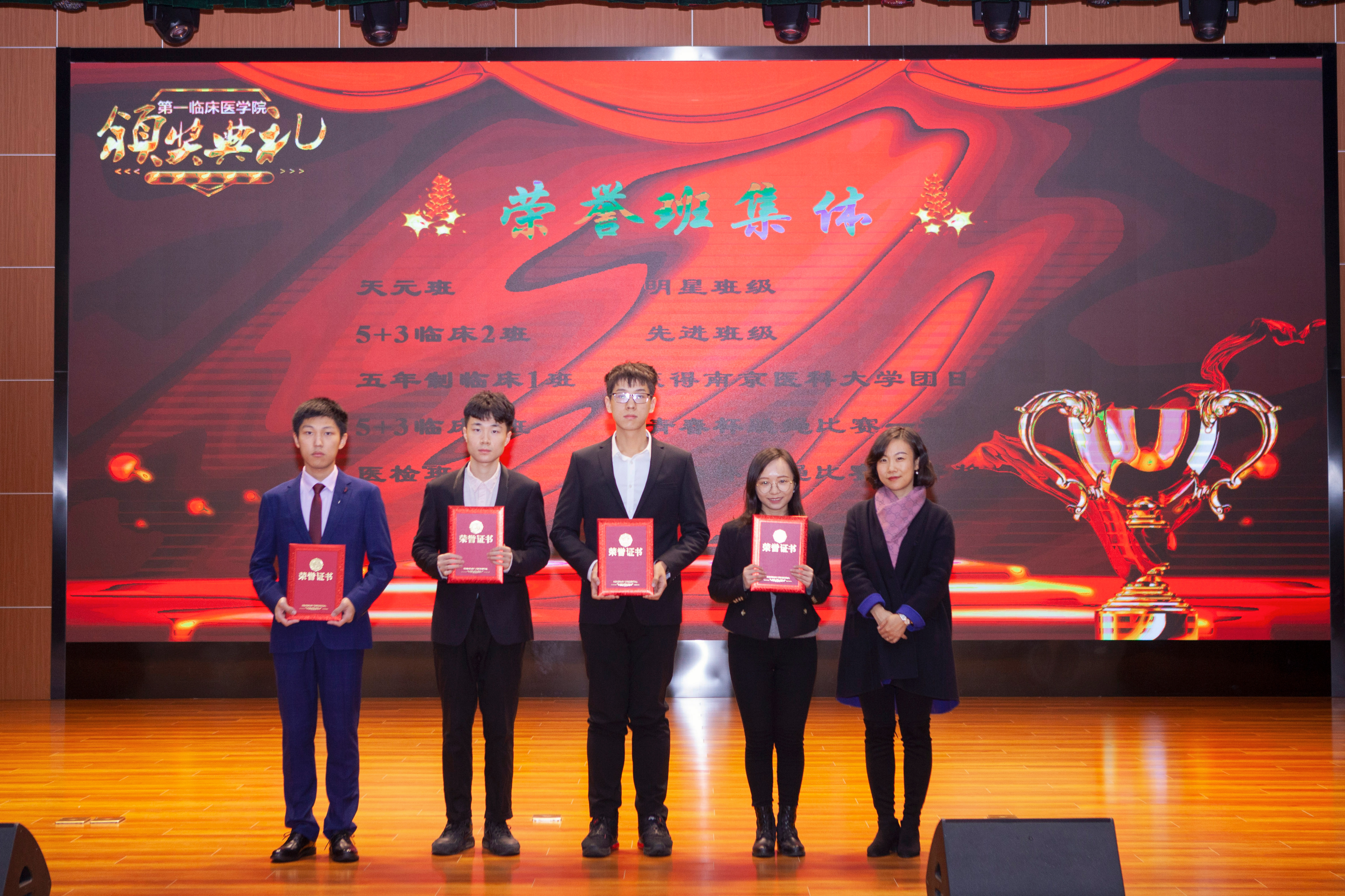 表彰大会伊始,主持人首先带领大家总结回顾了2019级在过去的一学年里在学习与科研、文体与竞赛以及暑期社会实践等方面取得的成绩。接着,与会领导嘉宾分别为国家级奖项获得者、省级奖项获得者、校级奖项和院级奖项获得者颁奖,包括特等奖学金、校优秀共青团员、暑期社会实践优秀团队、暑期社会实践优秀个人、明星班级体、先进班集体、学风示范寝室、运动会优秀运动员等共计20余项。在优秀学生代表发言环节,获奖个人代表(5+3)一体化4班的王舒宇、获奖集体代表天元班李佳玮两位同学依次上台分享个人和班级的成长感言,同时对学校、学院领导老师们的辛勤培育和大力支持表示感谢。在领导讲话环节,盛彤彤书记首先肯定了2019级在过去的一年中取得的优异成绩,对两位辅导员老师的辛勤付出表示感谢,同时希望同学们能够向榜样看齐,成为更好的自己。在同学们的热烈掌声中,本次大会圆满结束。