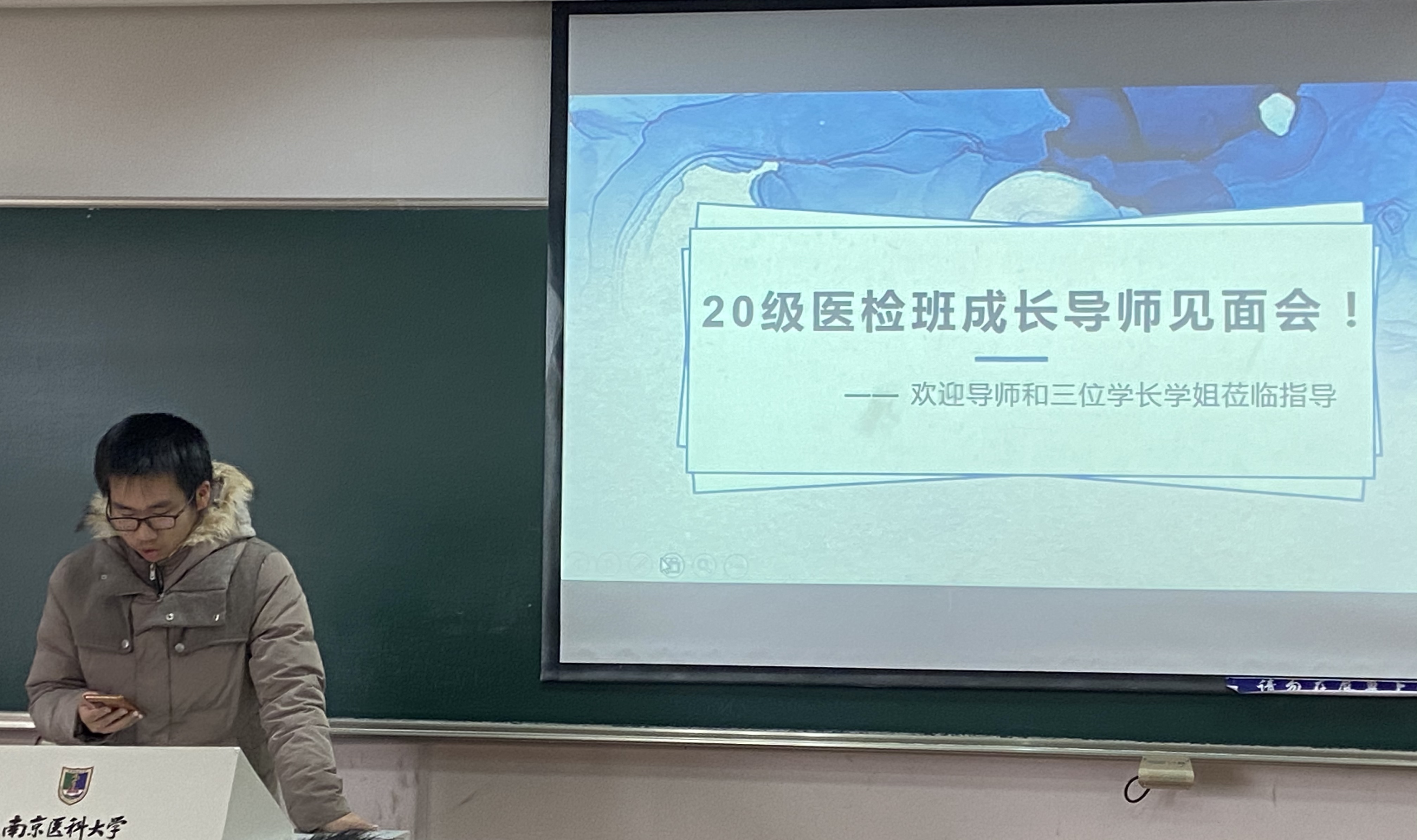 2020年12月11日星期五下午,第一临床医学院2020级医学检验技术班在江宁校区博学楼A307教室举行了成长导师见面会。班级成长导师王芳教授,一附院团委委员、副主任技师、副教授陈欢欢学长,一附院检验科感染病检验组主管、副研究员徐婷学姐,科室秘书余梦瑶学姐出席,医检班全体同学参与。会议由班长鲁佩辰同学主持。