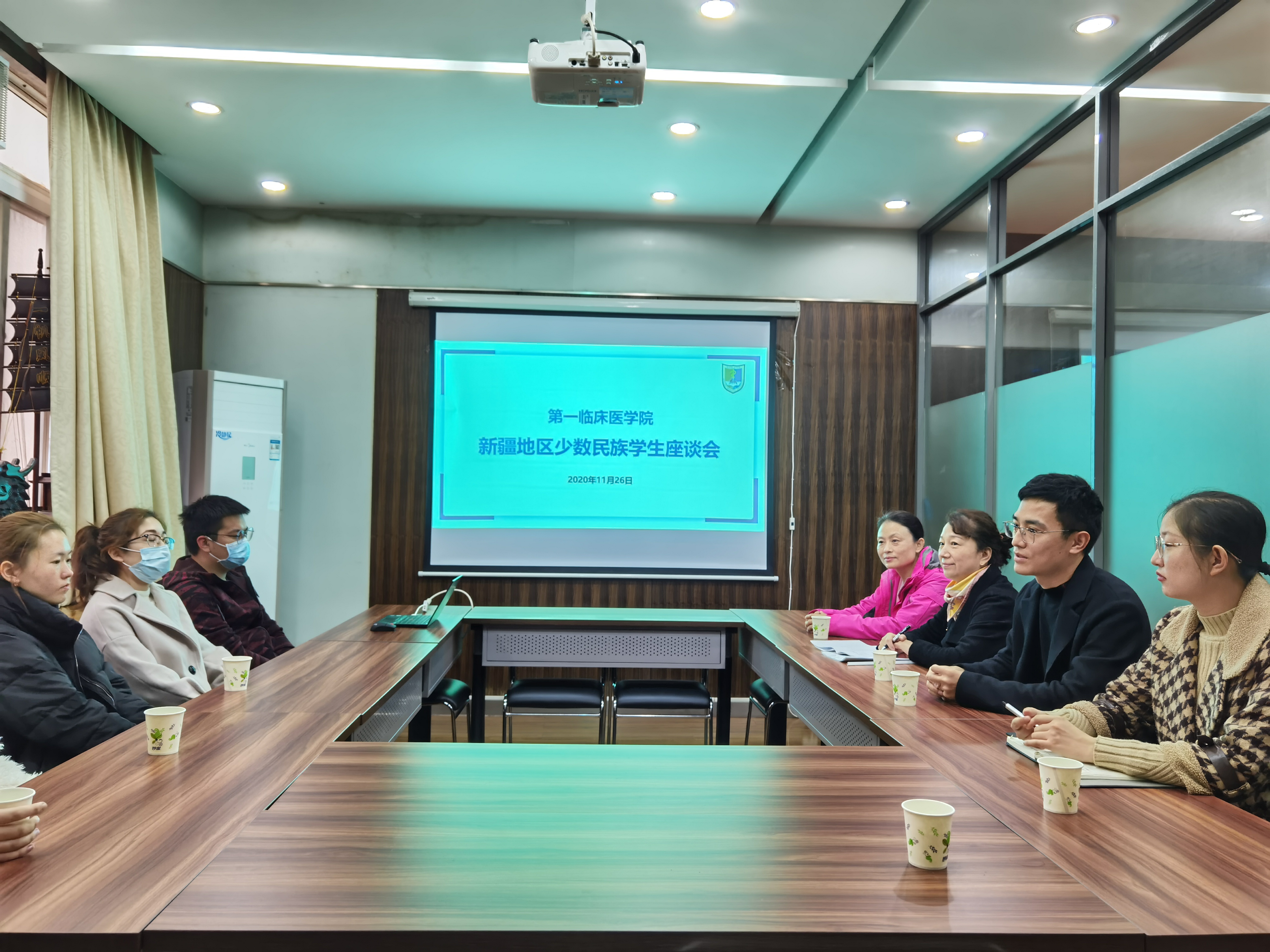 近期,第一临床医学院2018级分类别召开学生代表座谈会,新疆内派教师韩英、李莉,2018级辅导员熊潇、陈琪波和学生代表参加座谈。